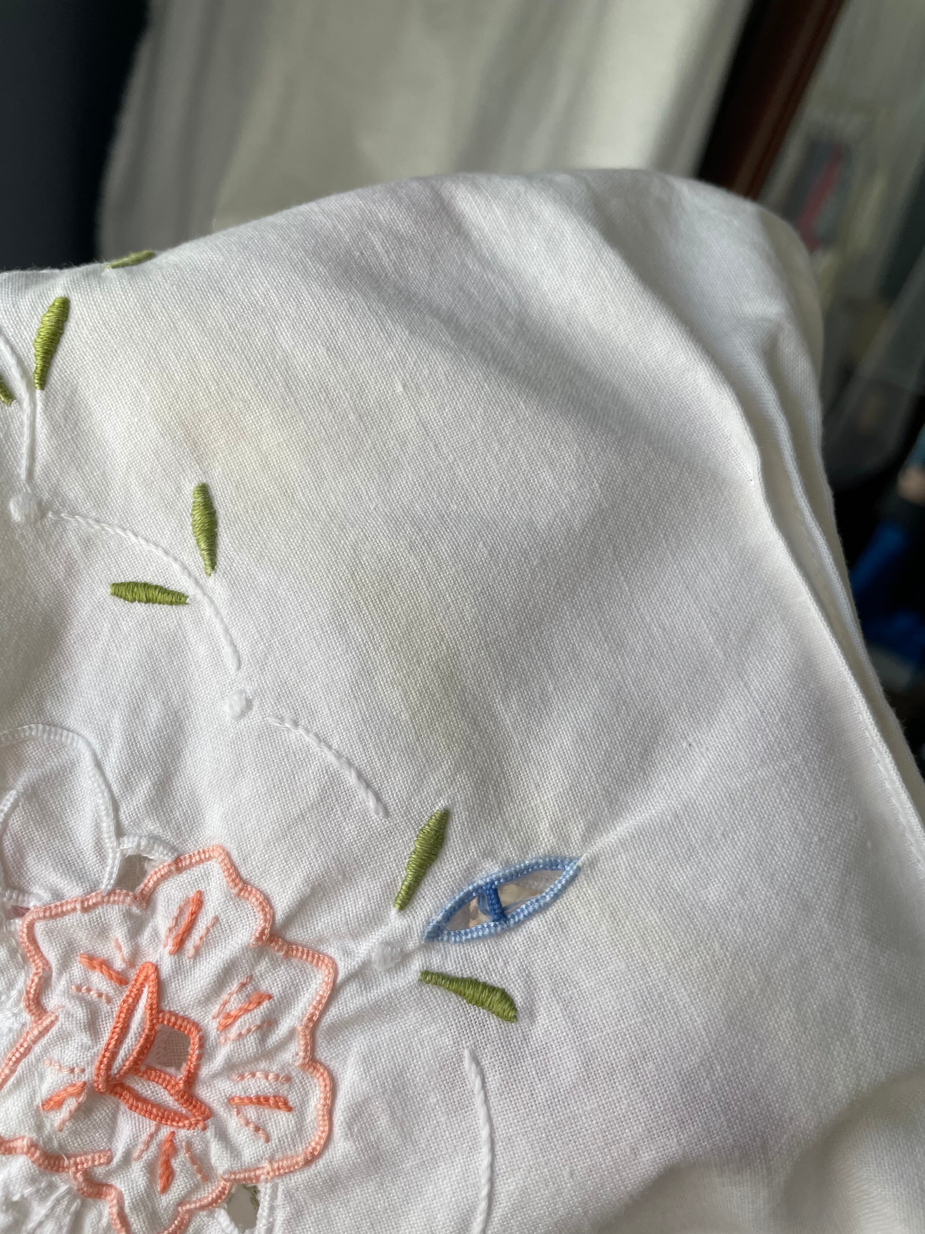 お花の刺繍が入った2枚のハンカチーフからできあがった一点ものです。