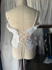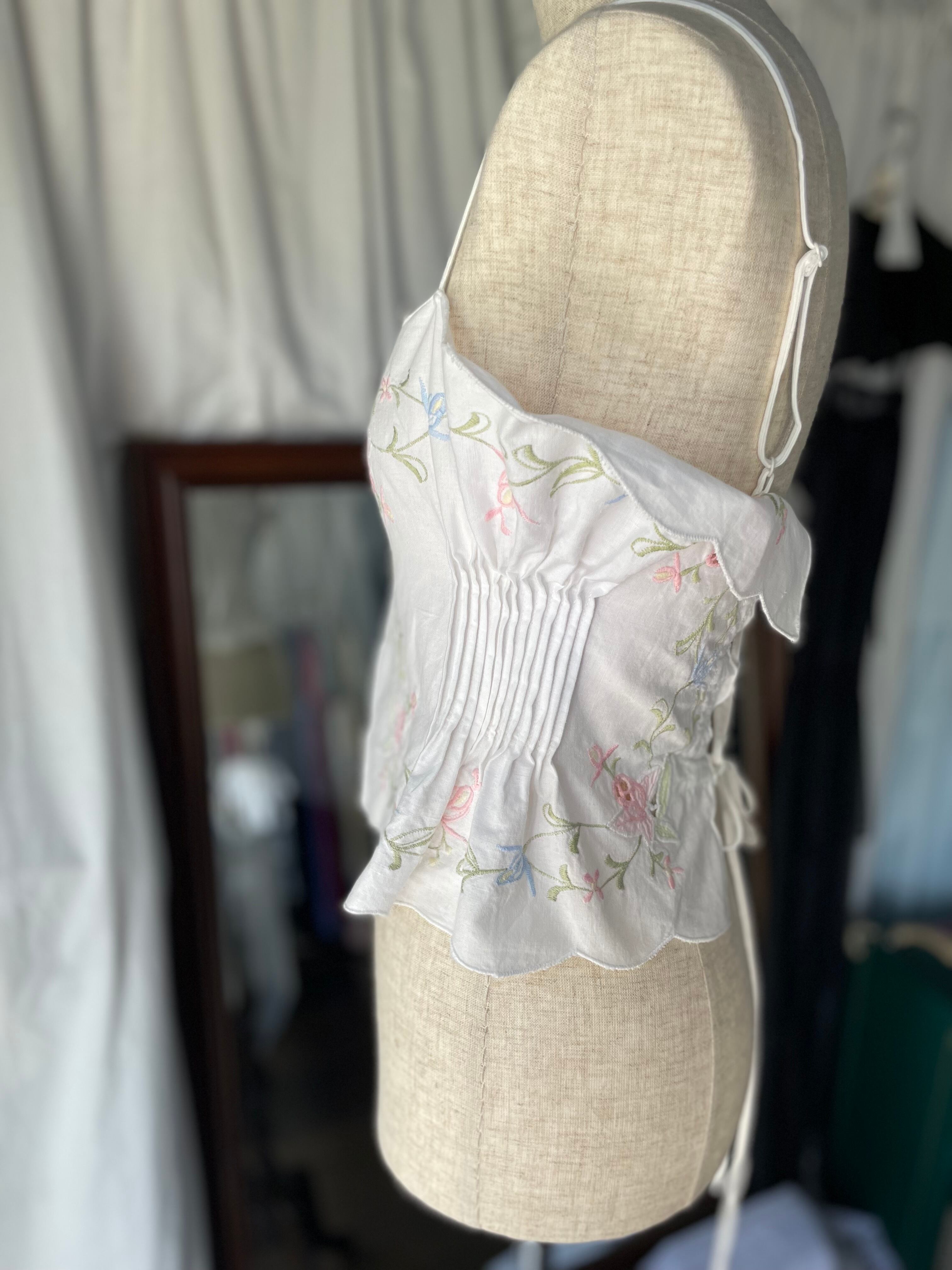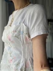 vintageの四角いハンカチーフを自分ならどう着たいかと自由に考え制作されたビスチェ。