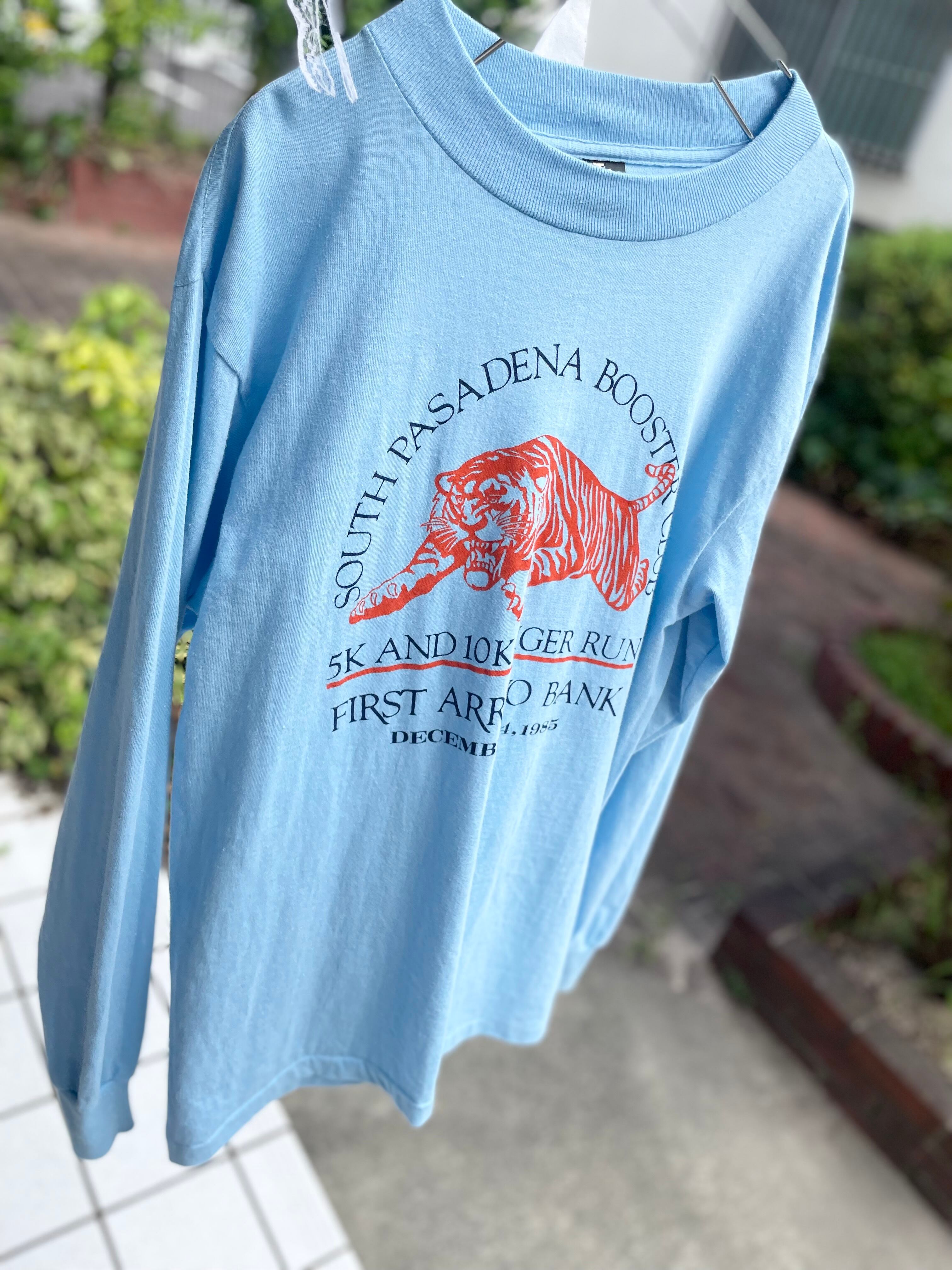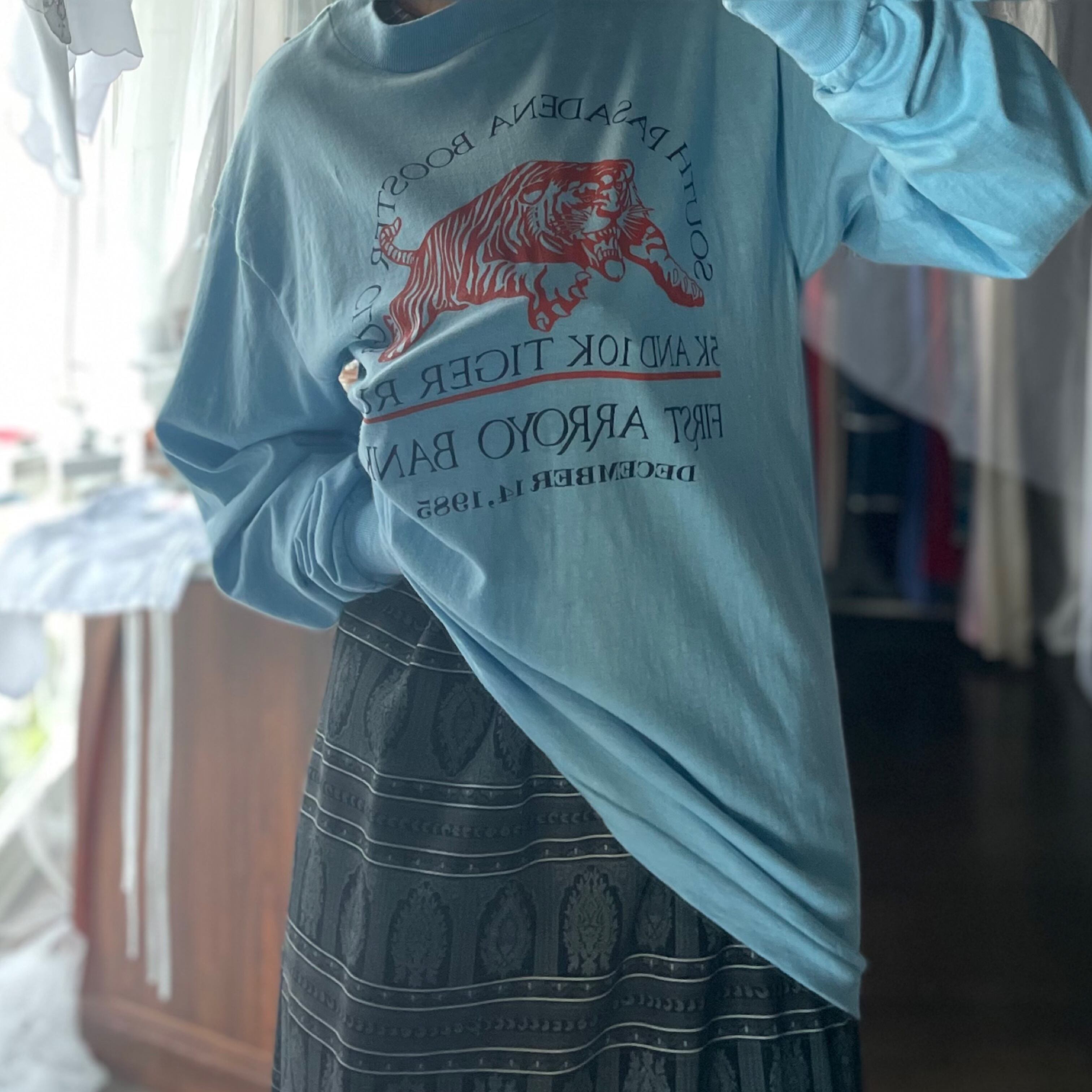 きれいな水色にオレンジのタイガーがかわいいlong sleeve T