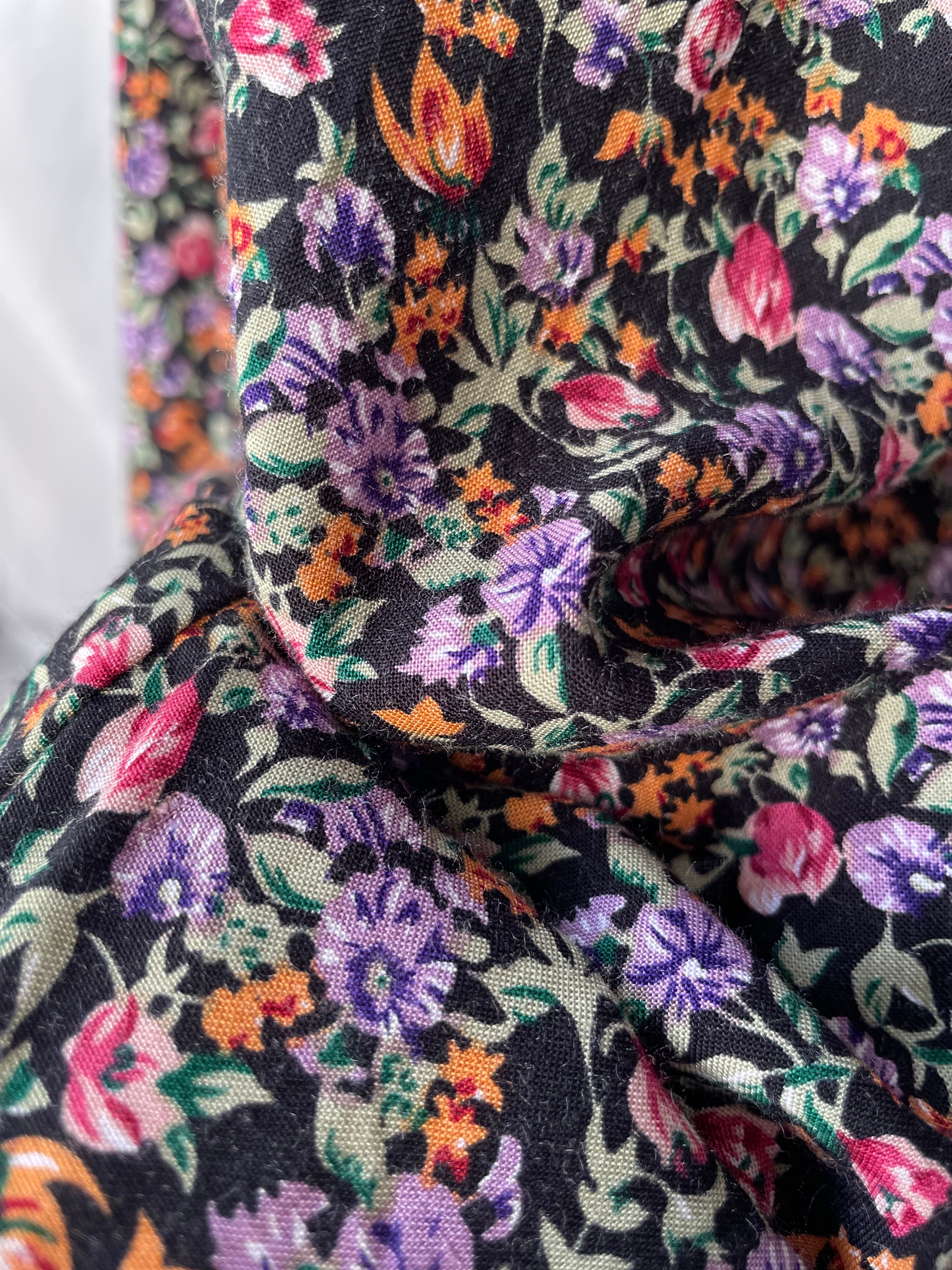 blackベースにパープル、ピンク、オレンジのたっぷりのお花柄