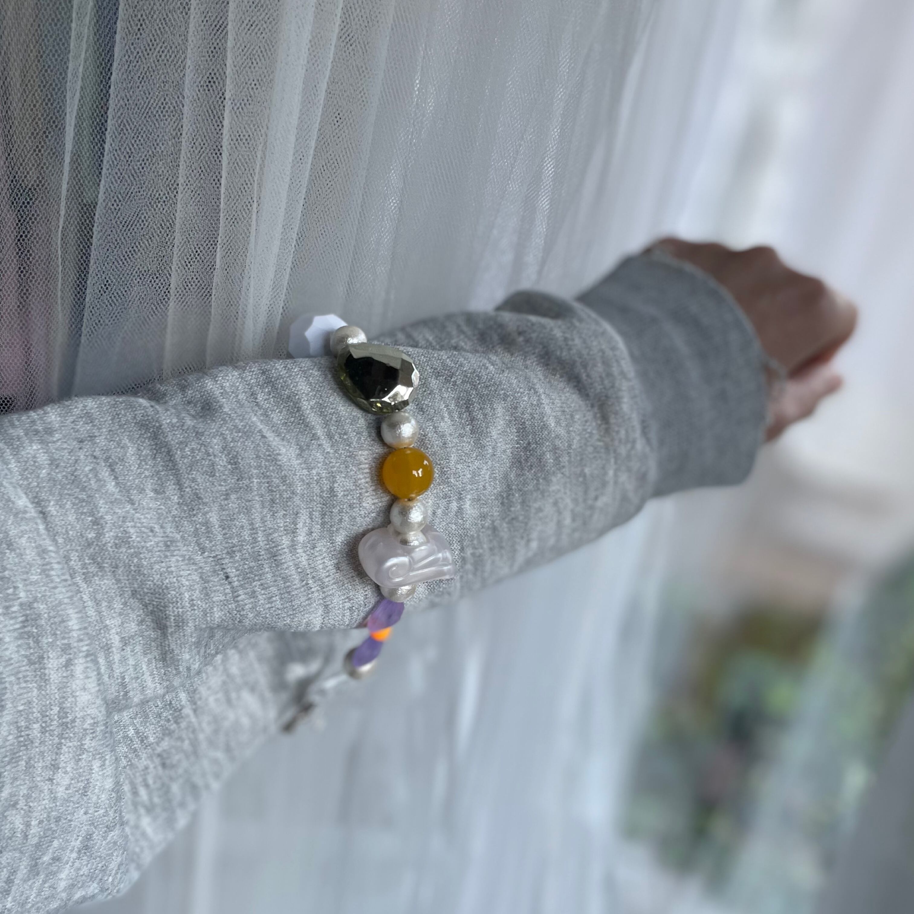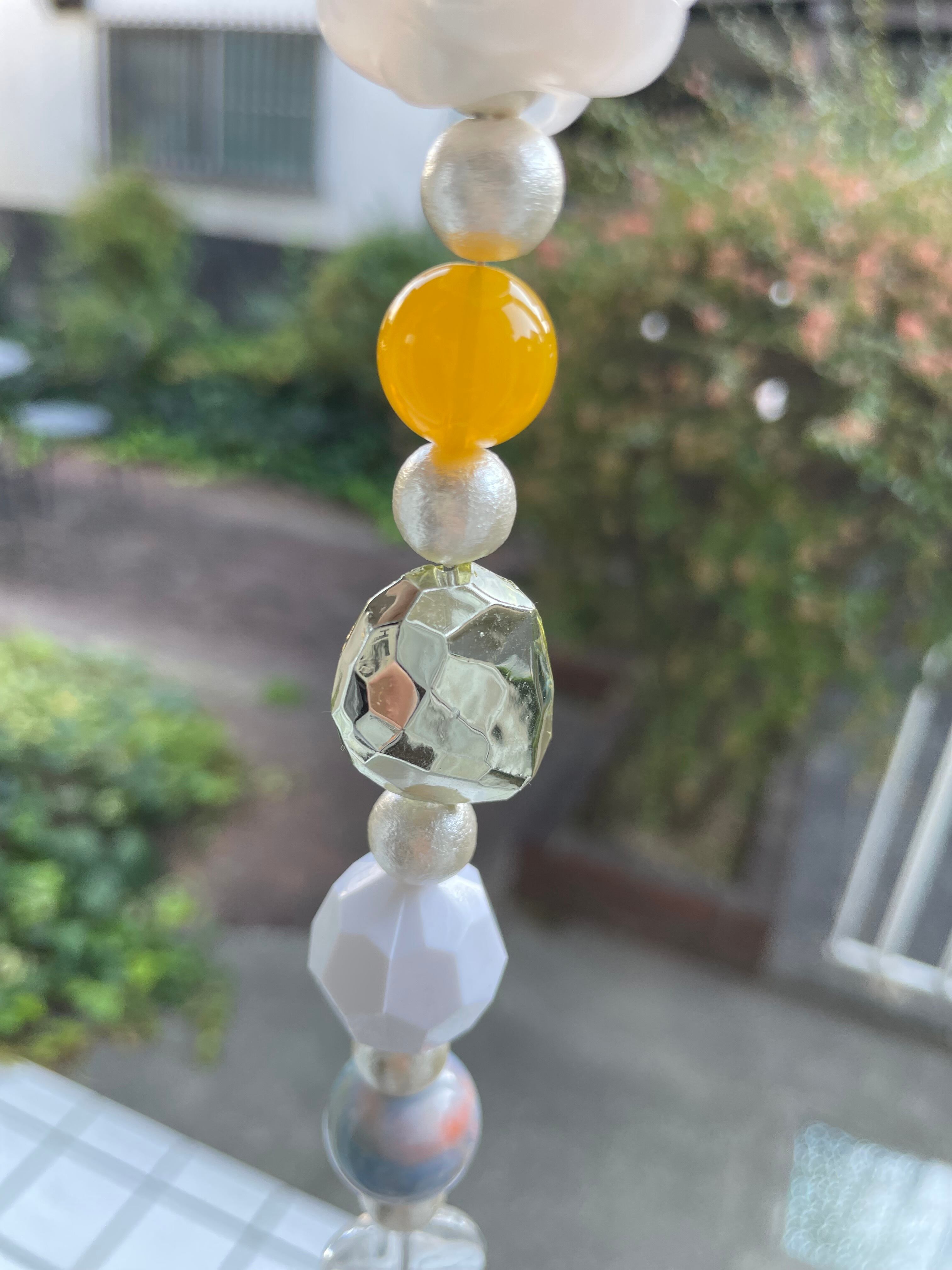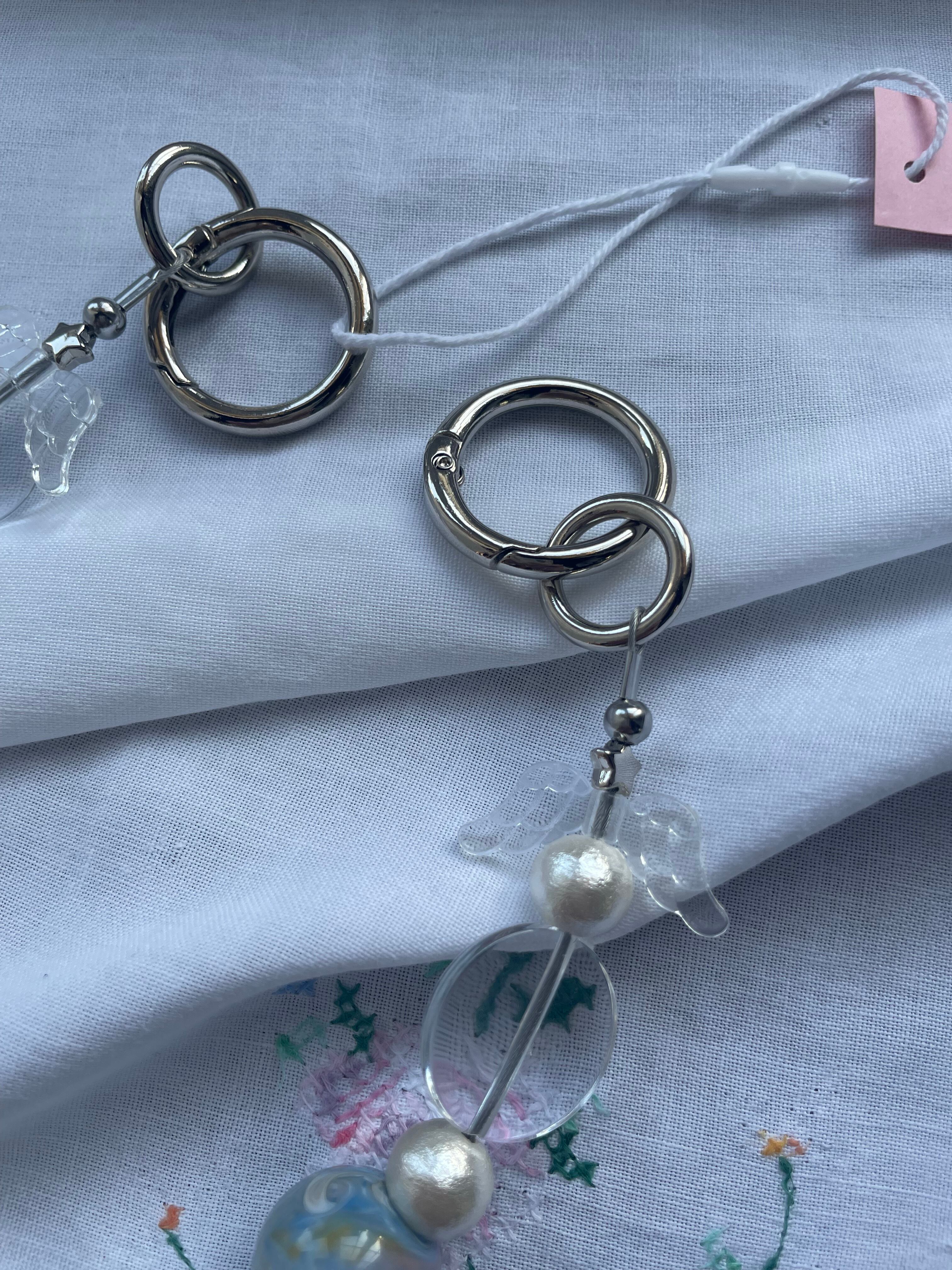羽根モチーフ以外にも、カラーのきれいなマーブルのパーツやハート、クリア、ポイントになるオレンジ、煌めくパーツなどなどemiumigumiのパーツ遊びが楽しい1点