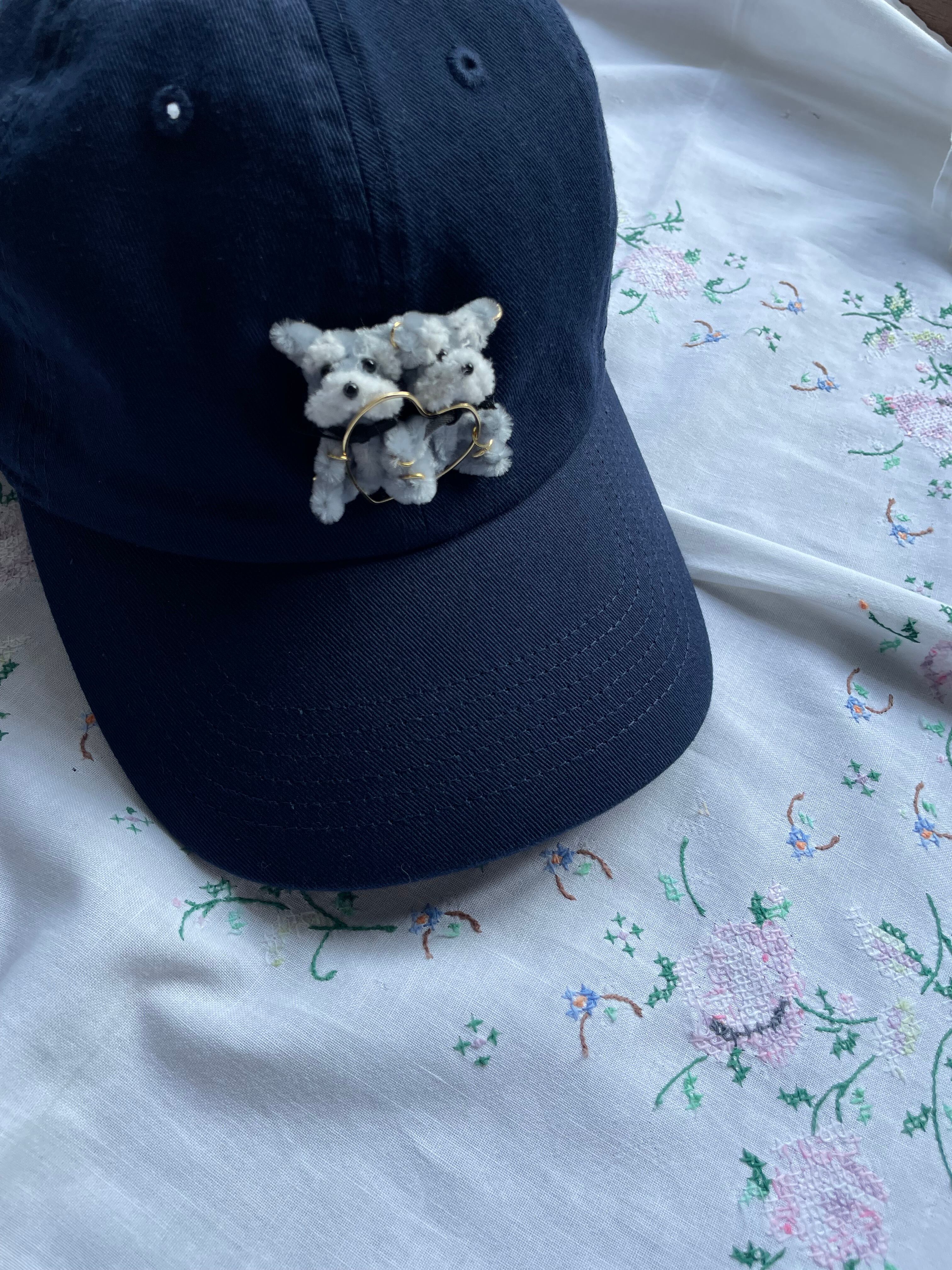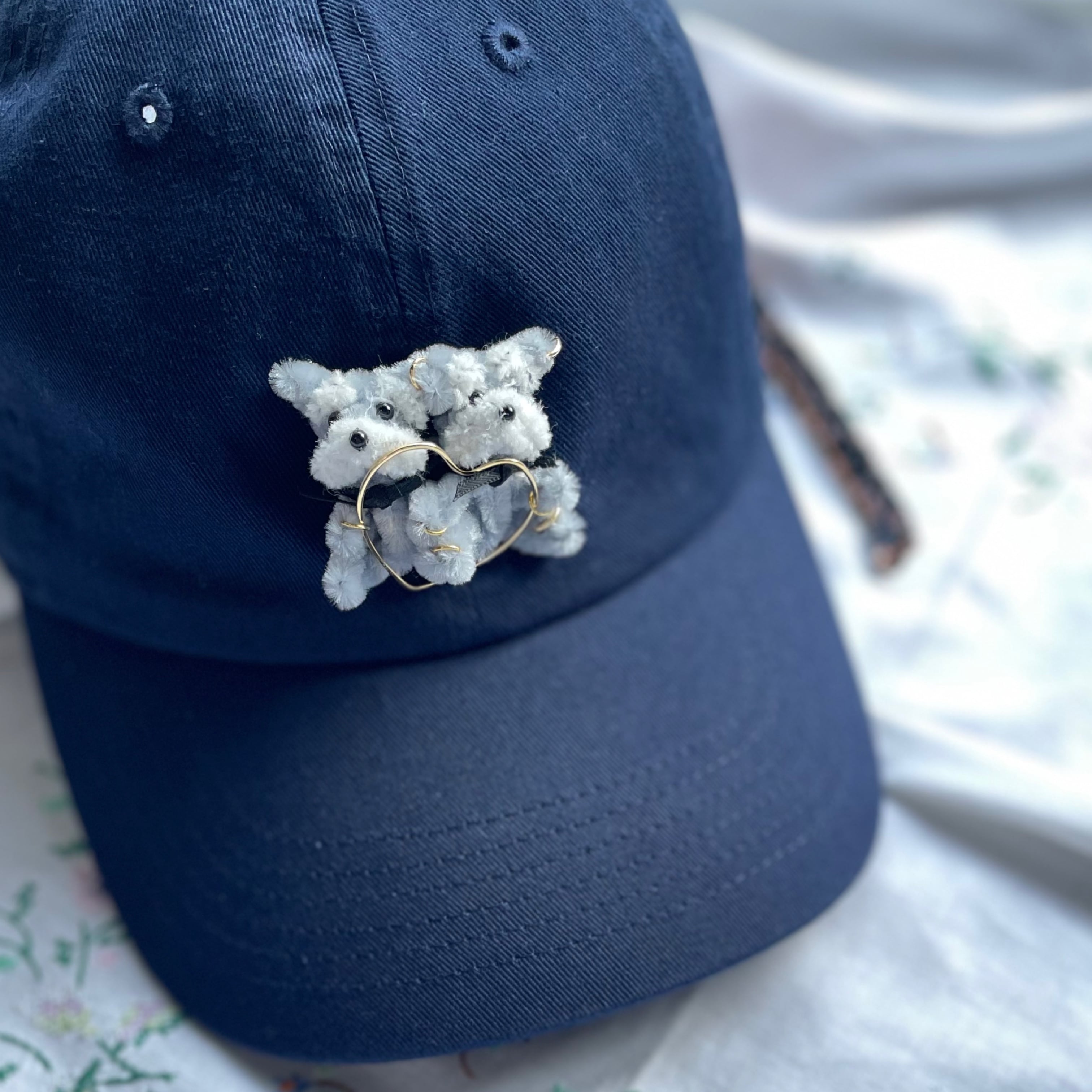シュナウザーモチーフ、リボンやタグも手作業でひとつひとつ制作されています。