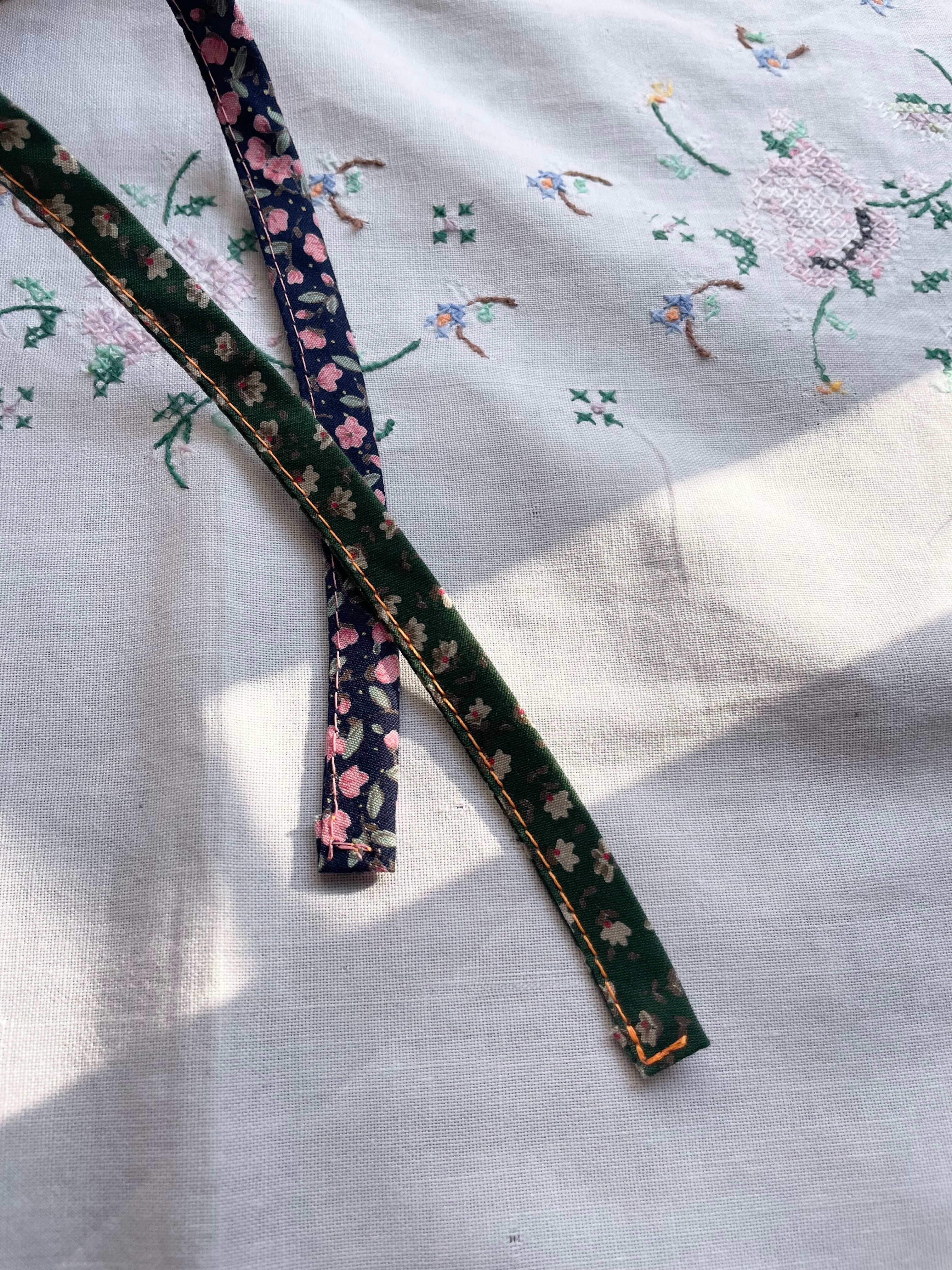 こちらのリボンはネイビーベース、グリーンベースの小花柄