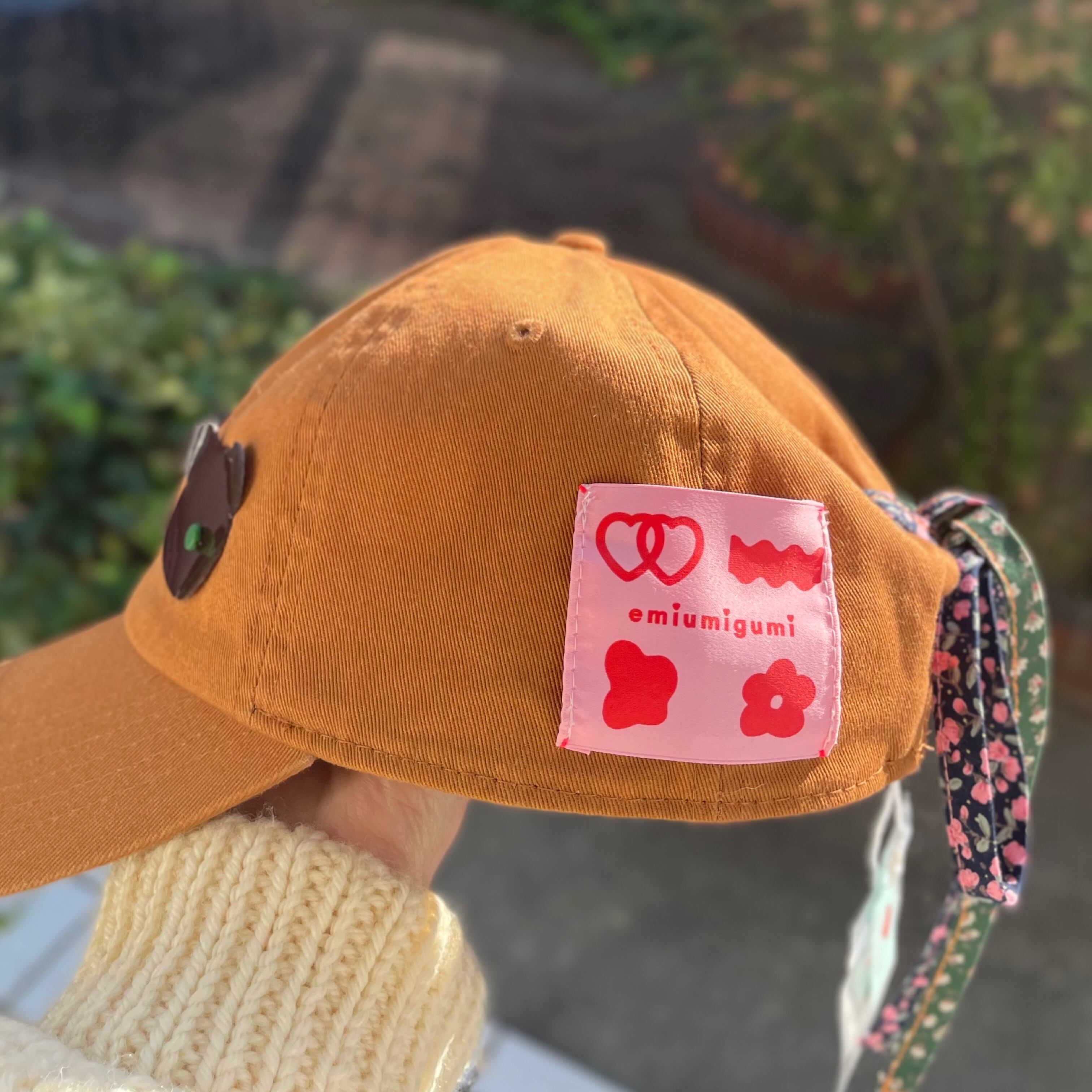 アップリケのつるりとした素材感とCAPのベースのコットンとの異素材感も魅力です