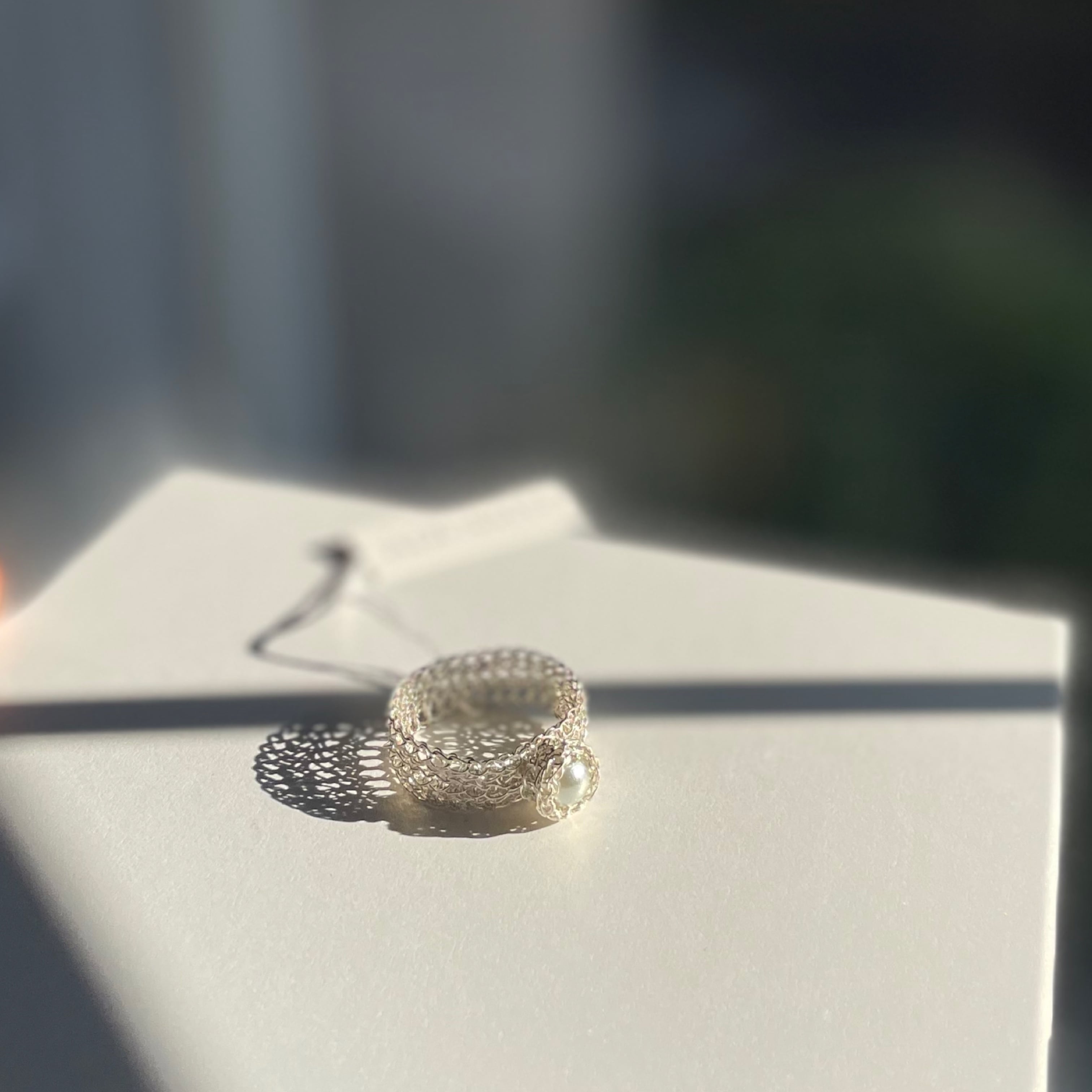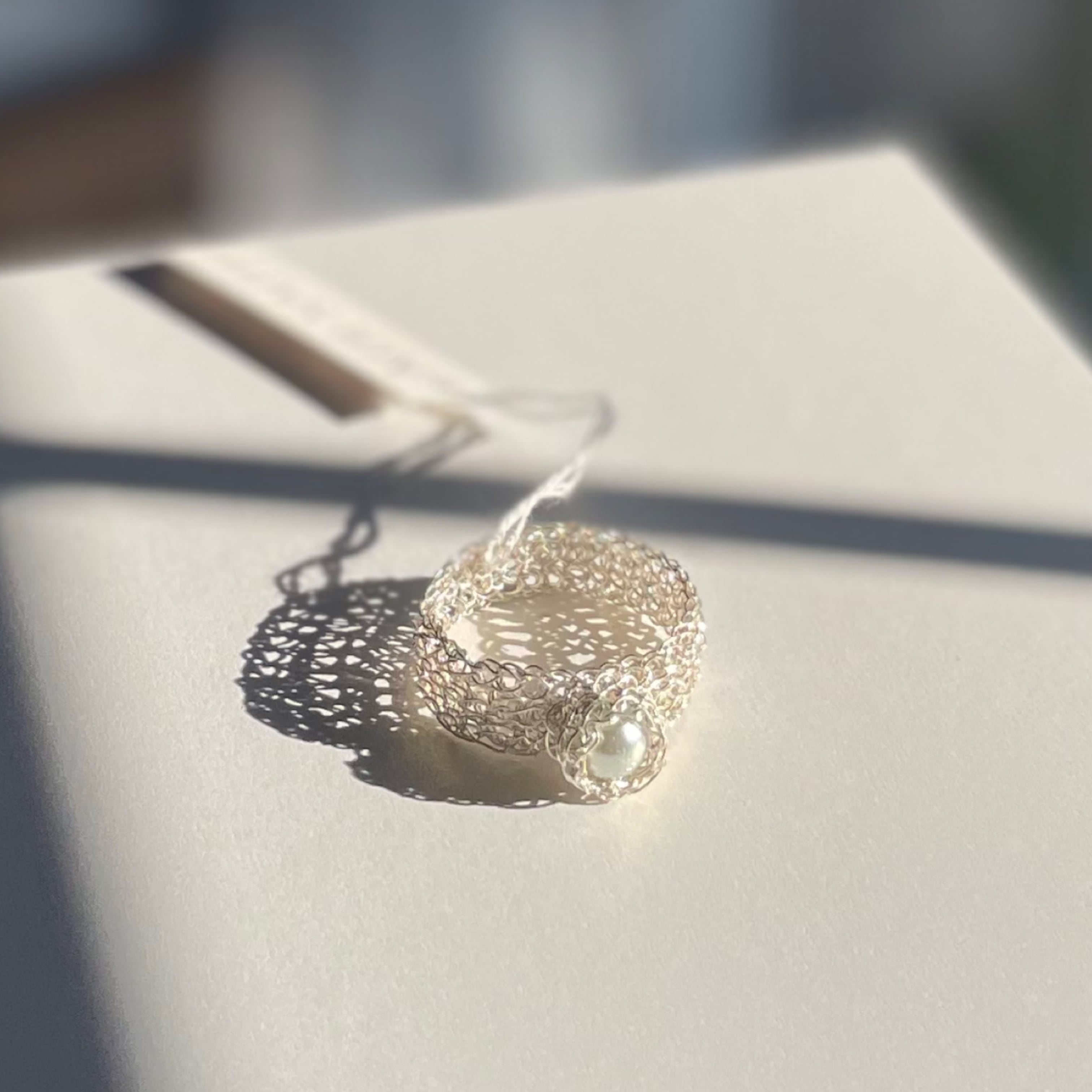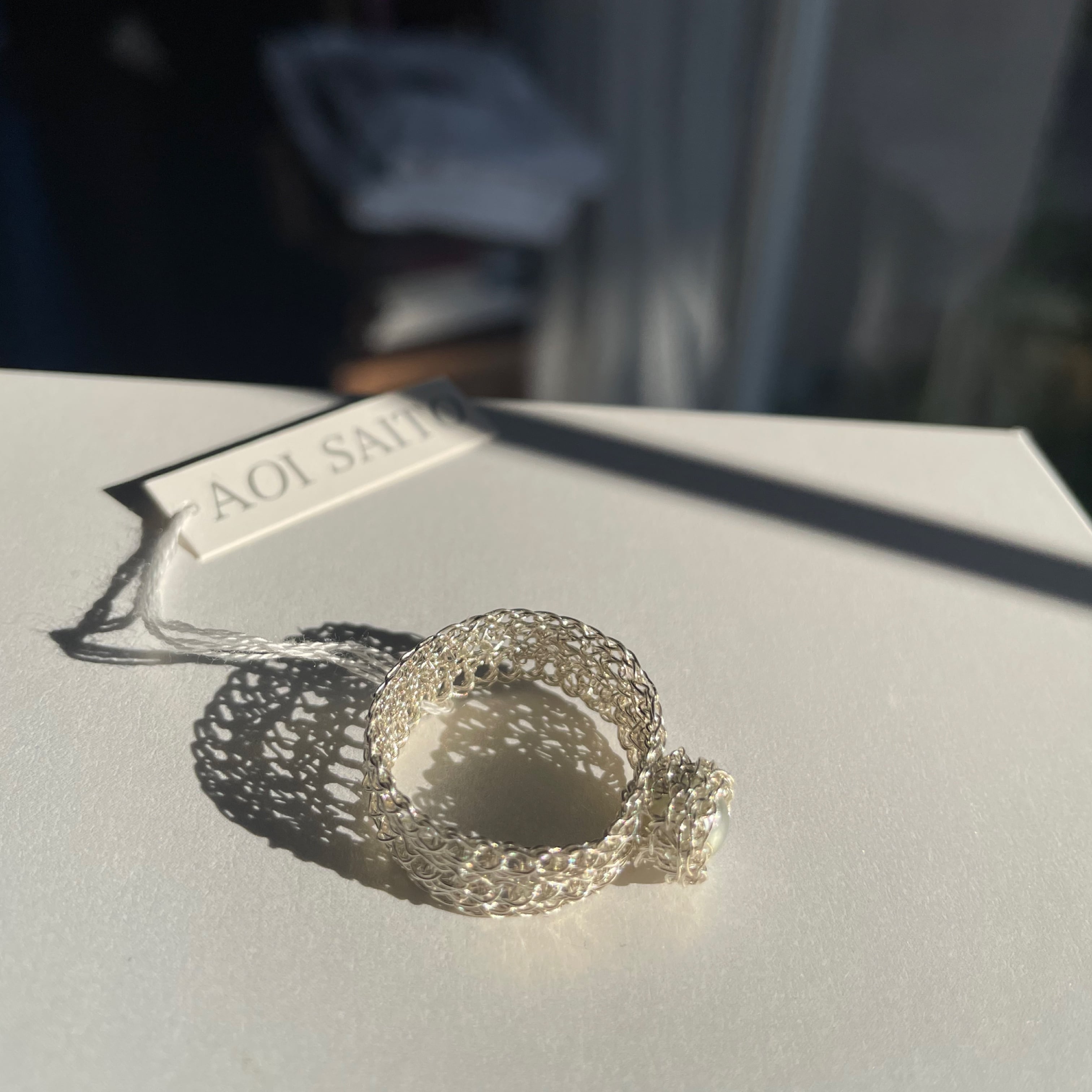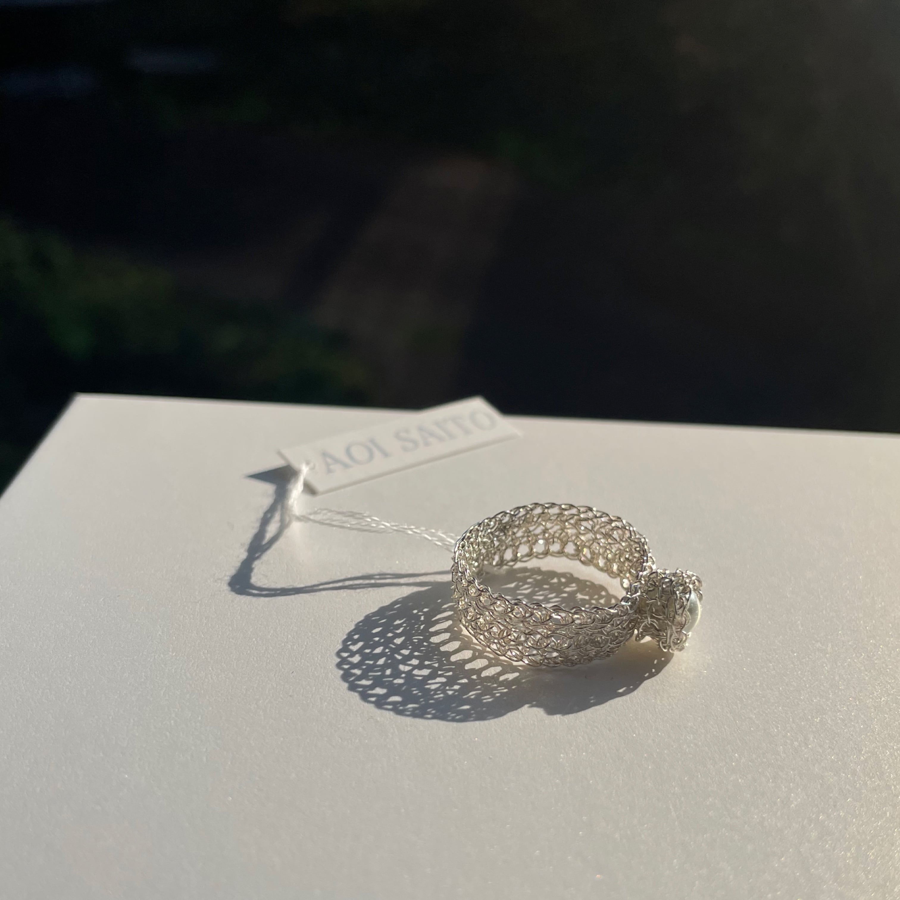 線状になった金属を手編みする事で、立体に空間と弾力が生まれる面白さにはまり、工業用ワイヤーを手編みした透け感のあるアクセサリーやオブジェ等の制作。