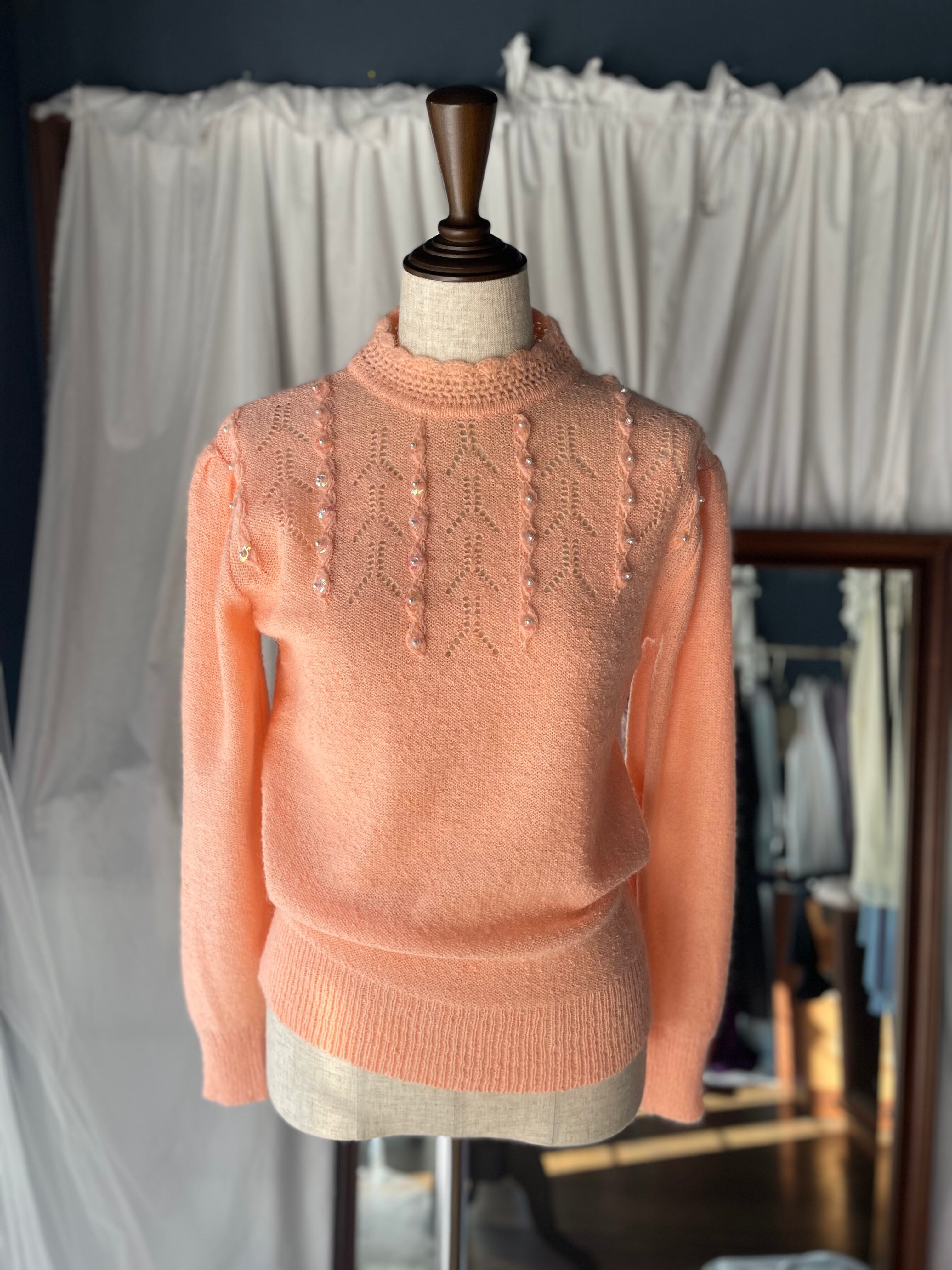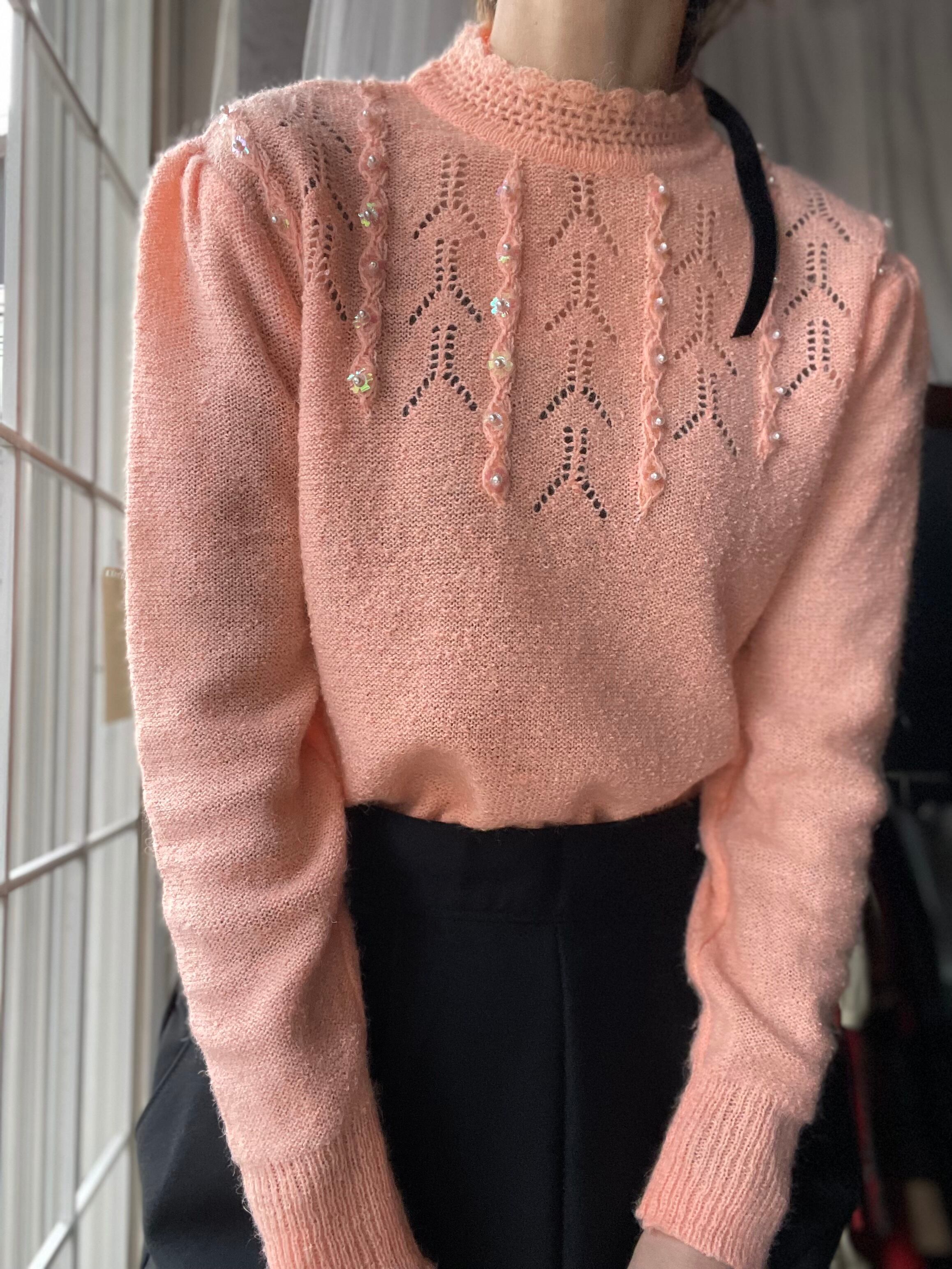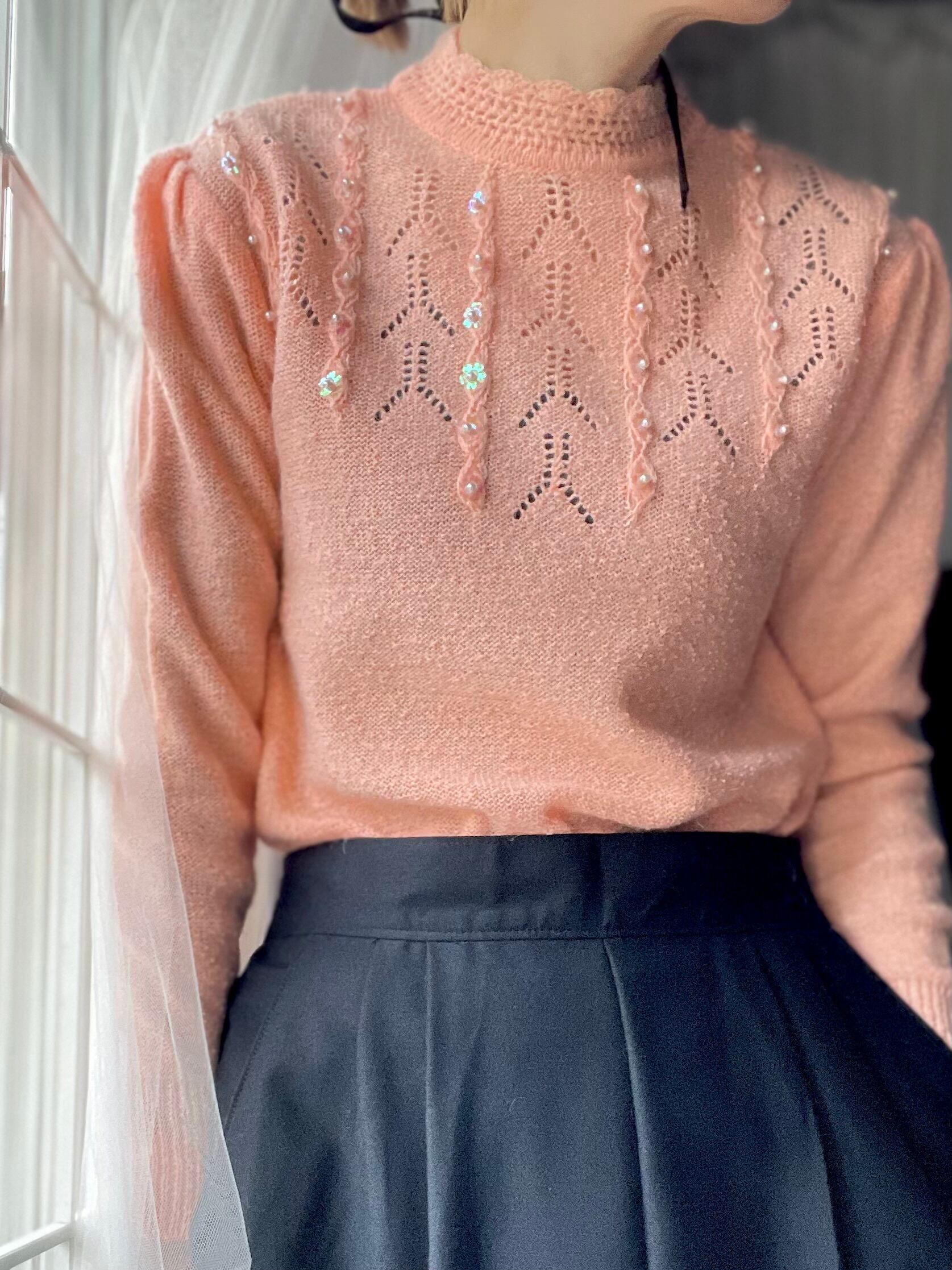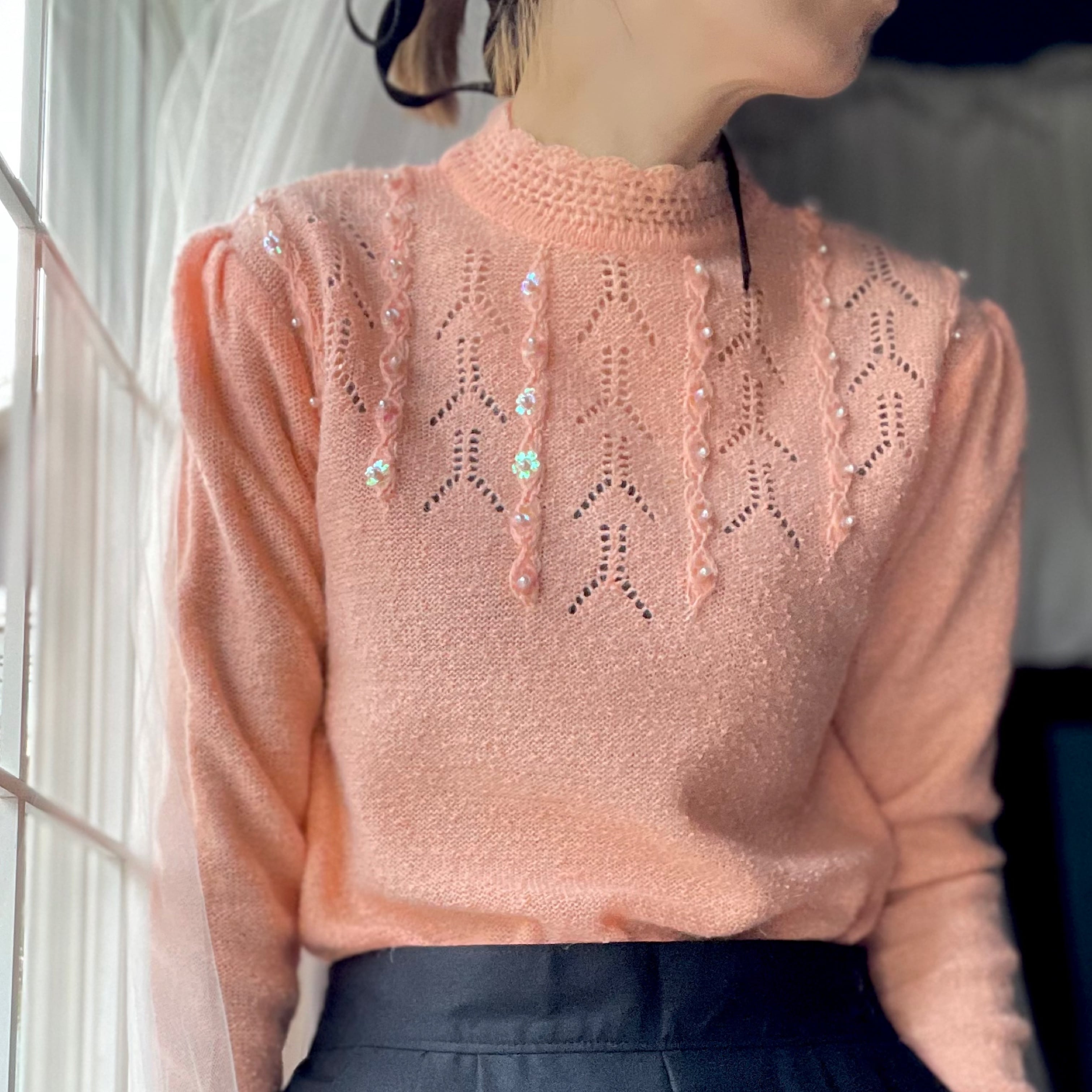 コンパクトなシルエットにさりげないパフもかわいい春色のニットです。