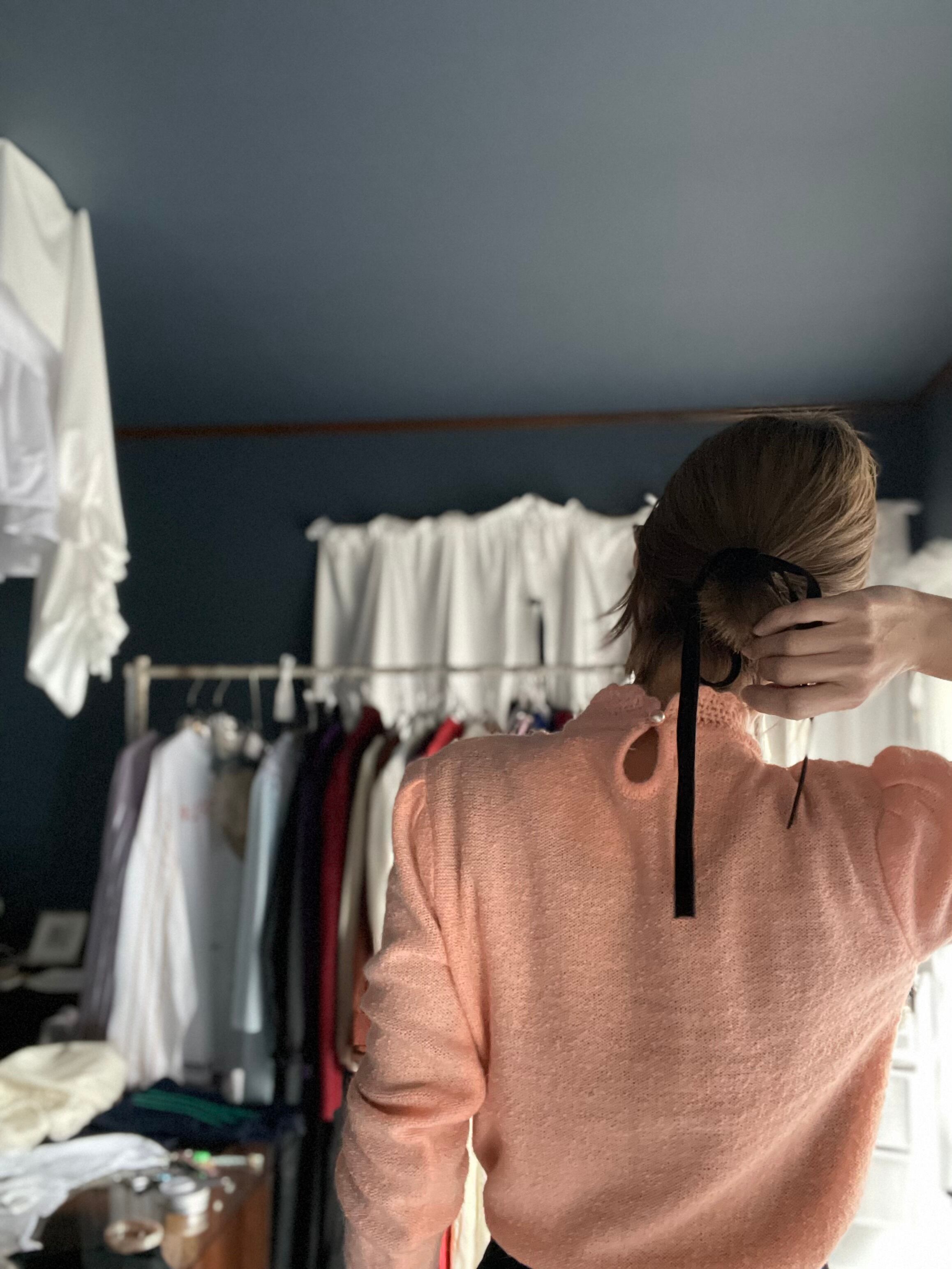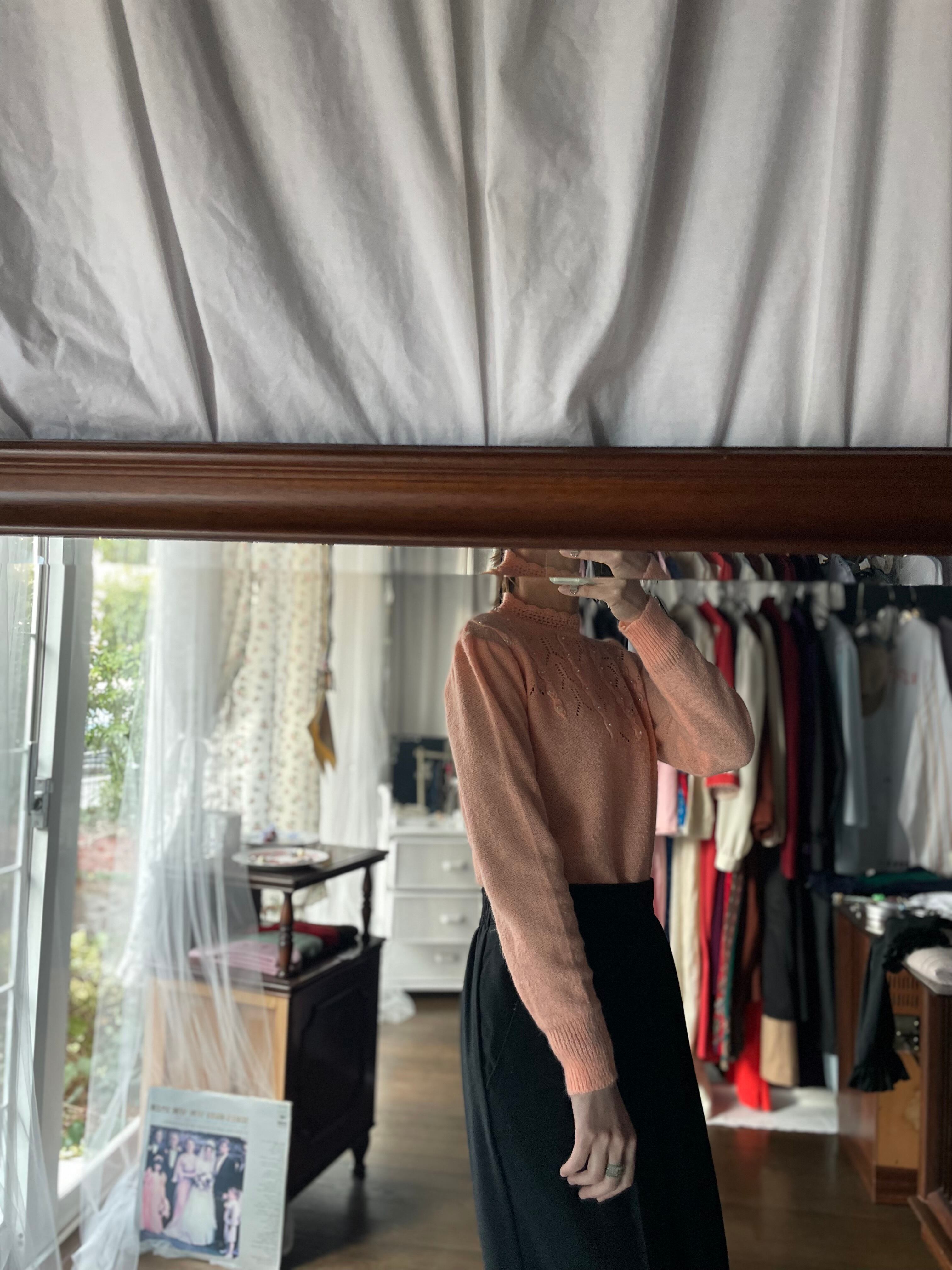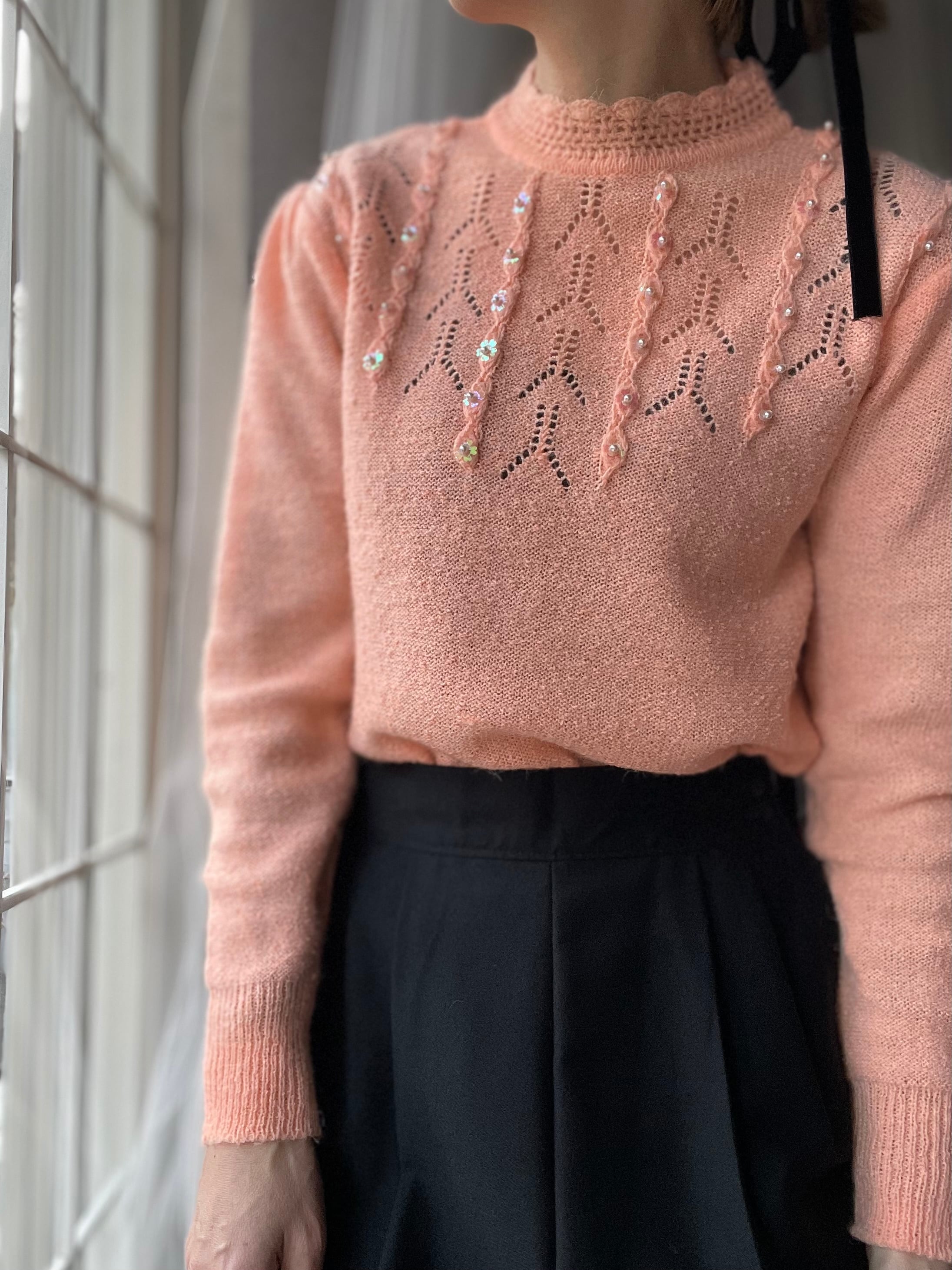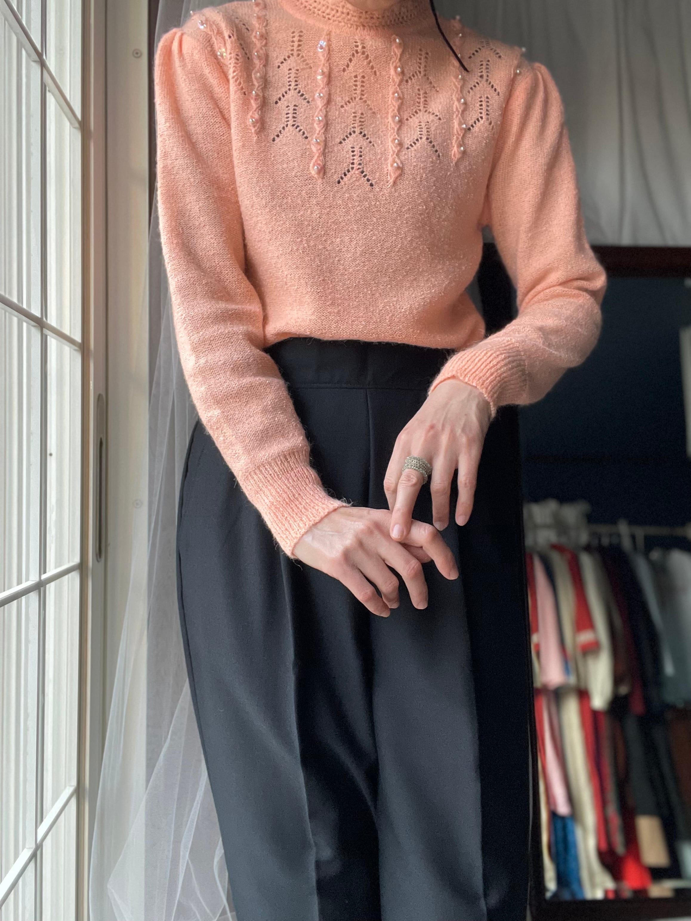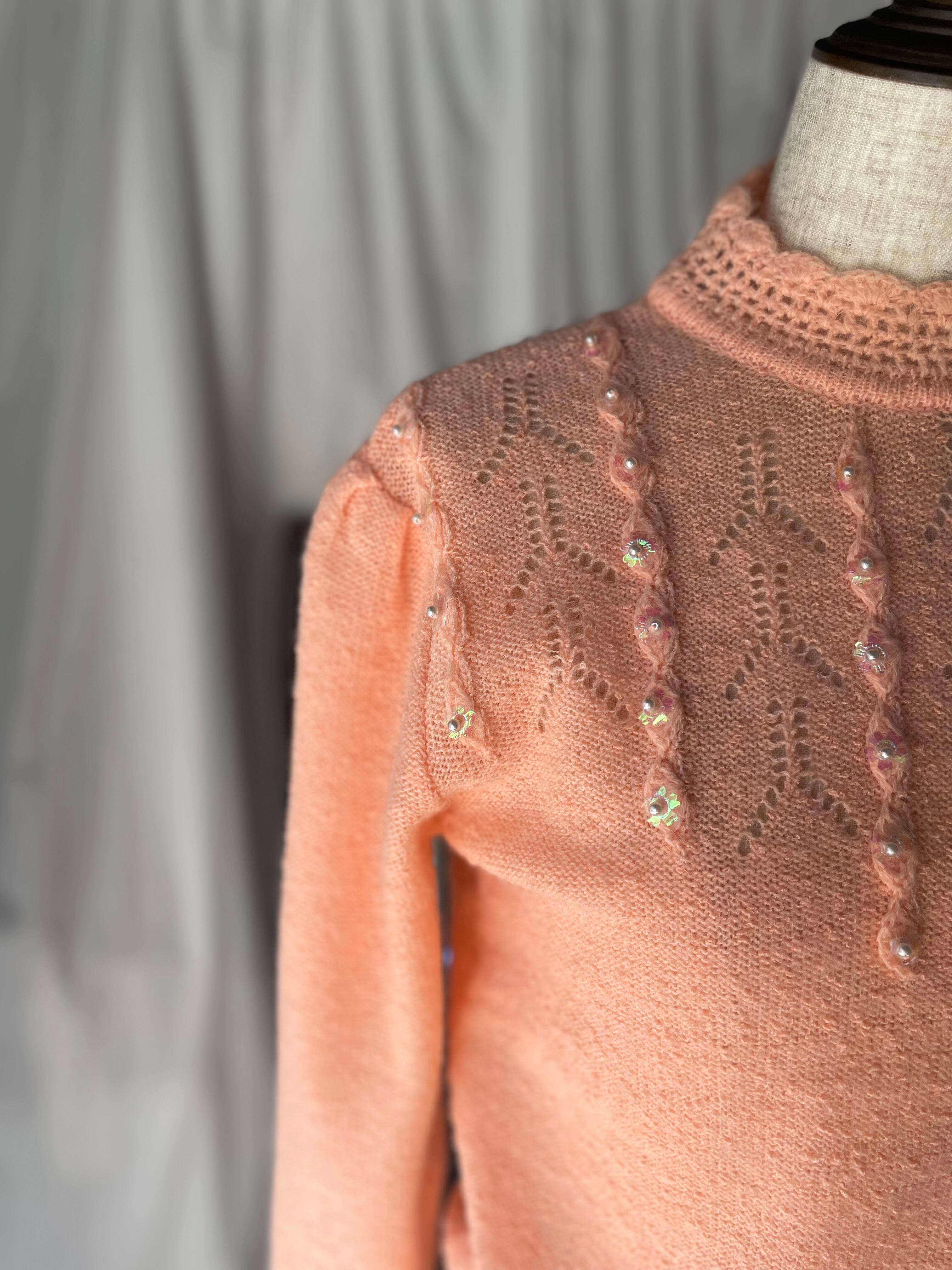 コンパクトなシルエットにさりげないパフもかわいい春色のニットです。