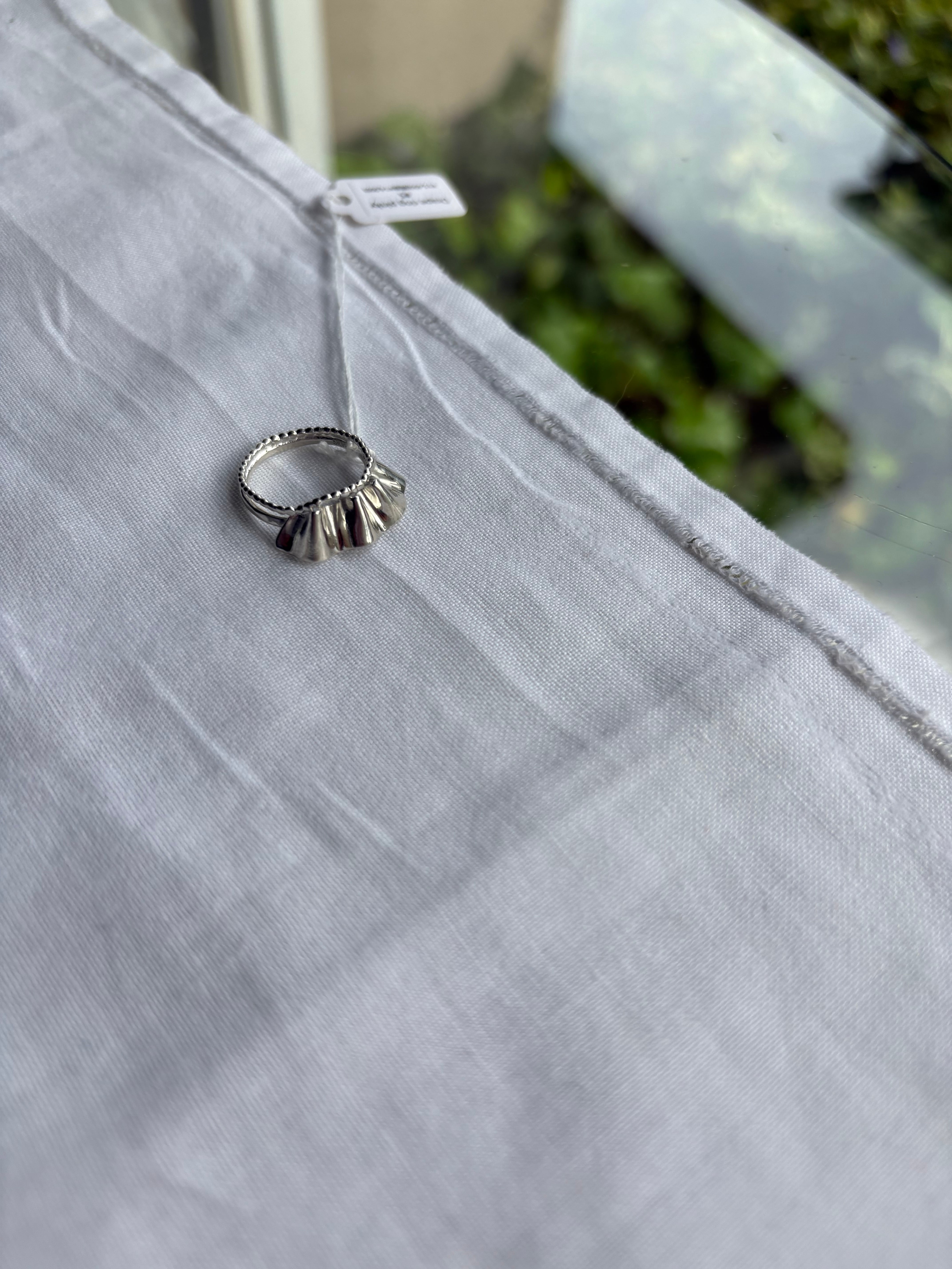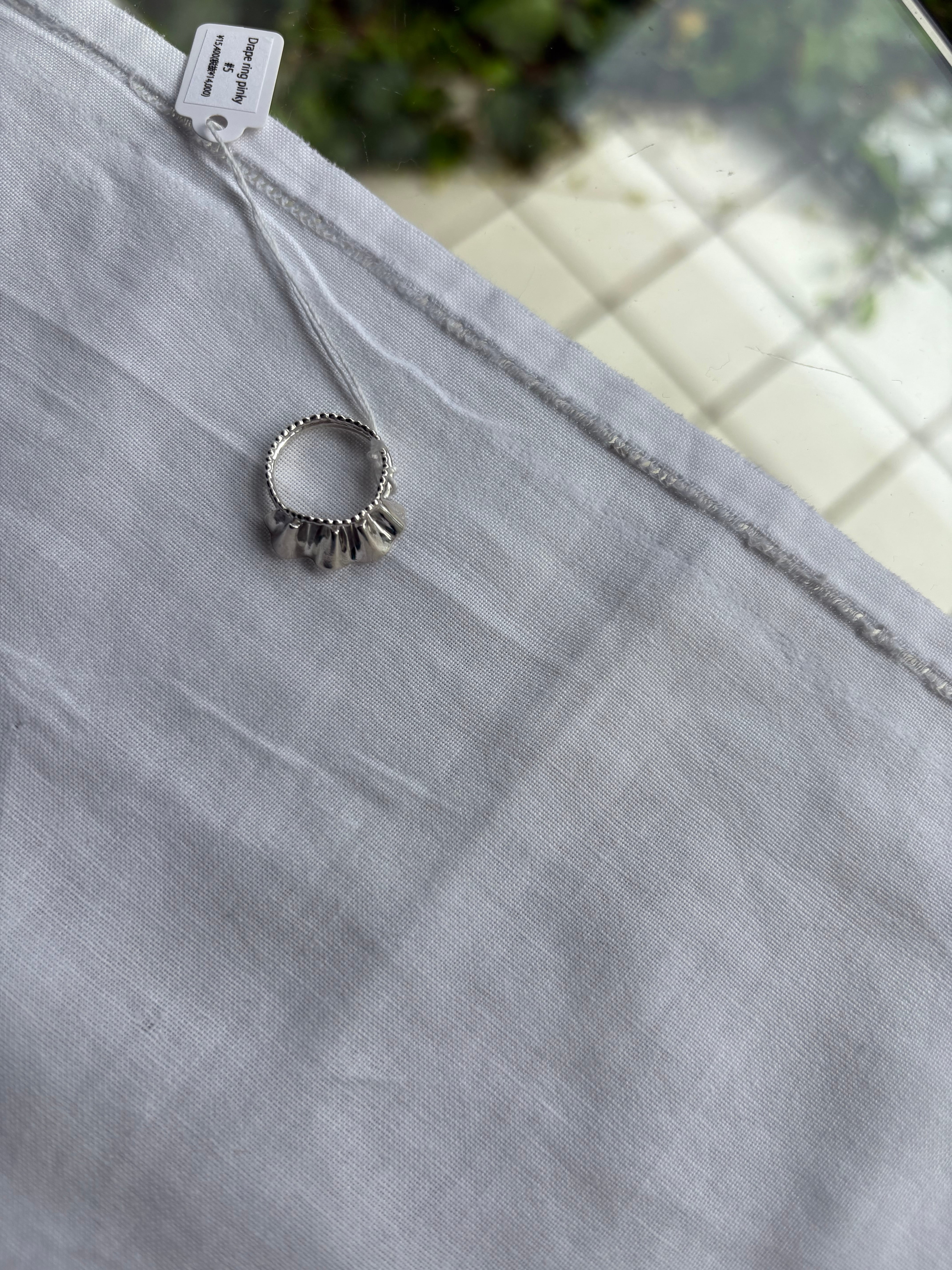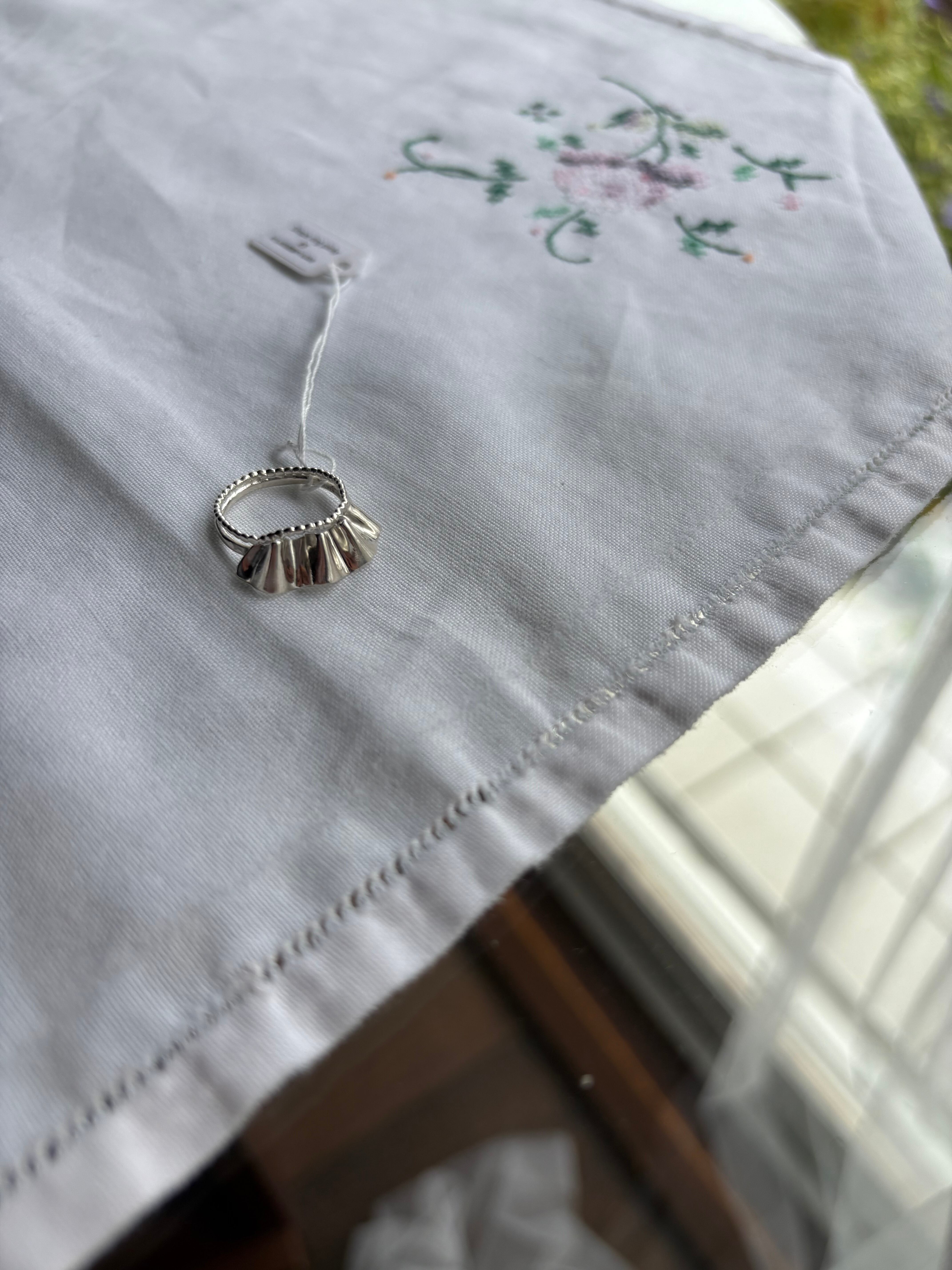 光を浴びてドレープが煌めく様がとても素敵なリングです。
