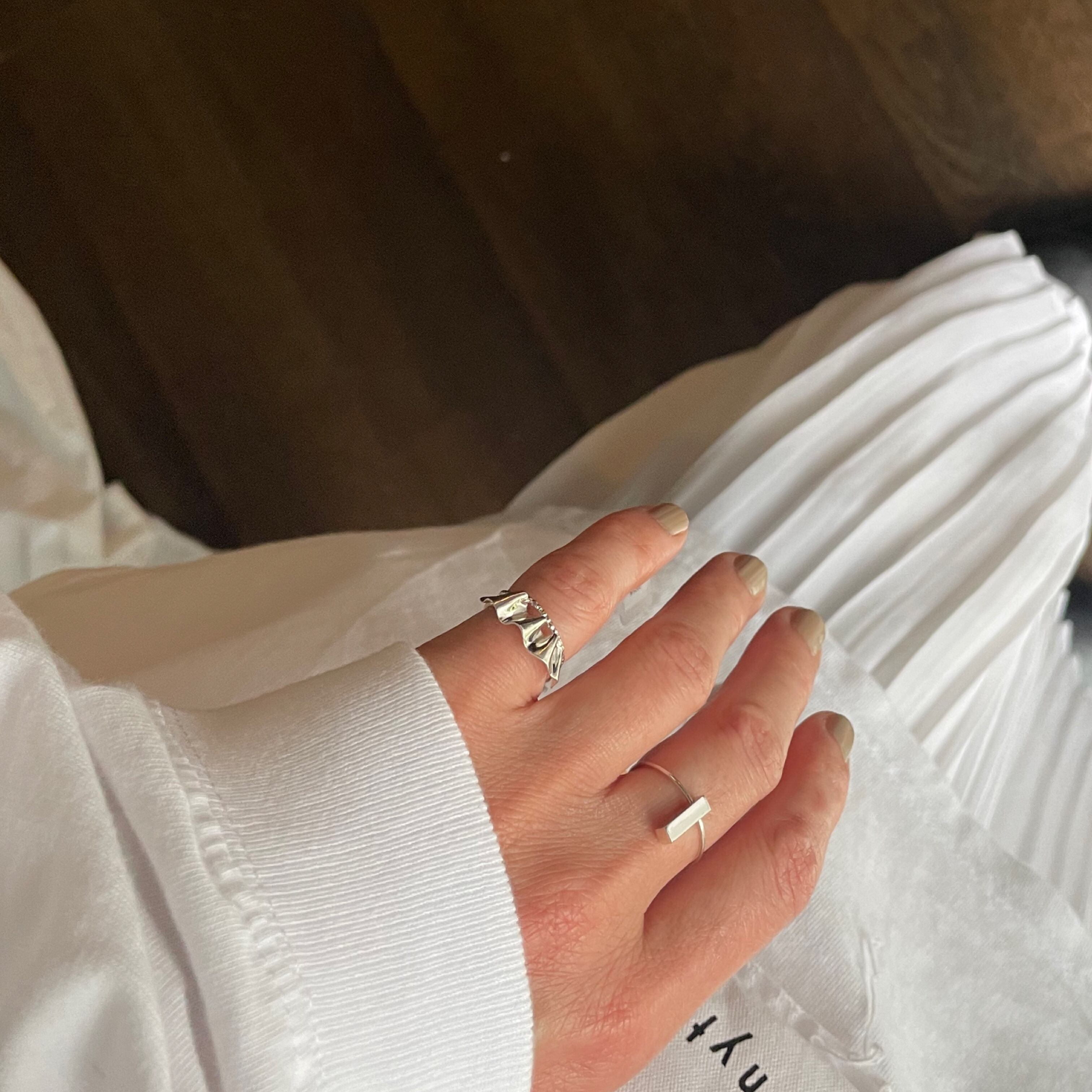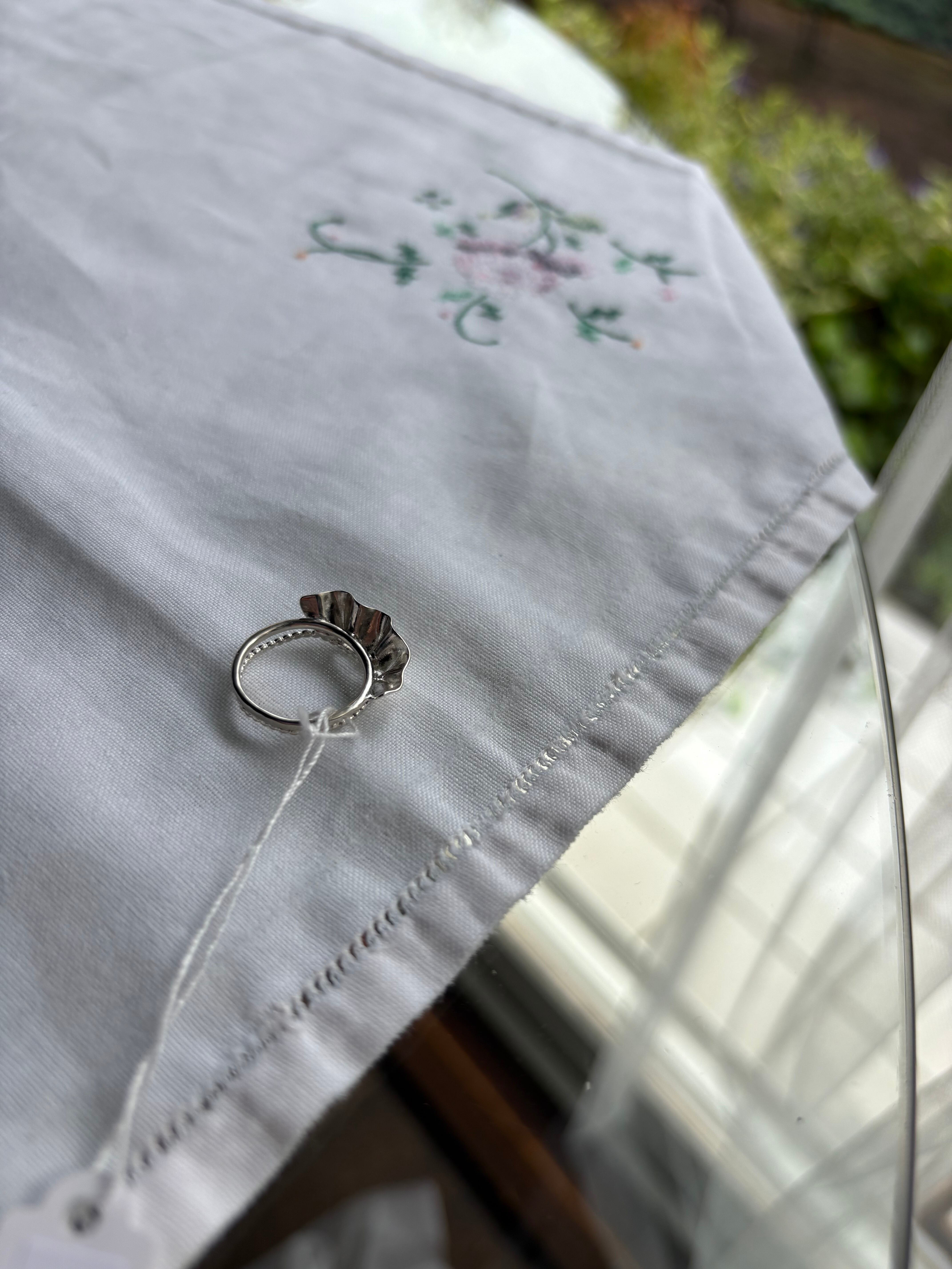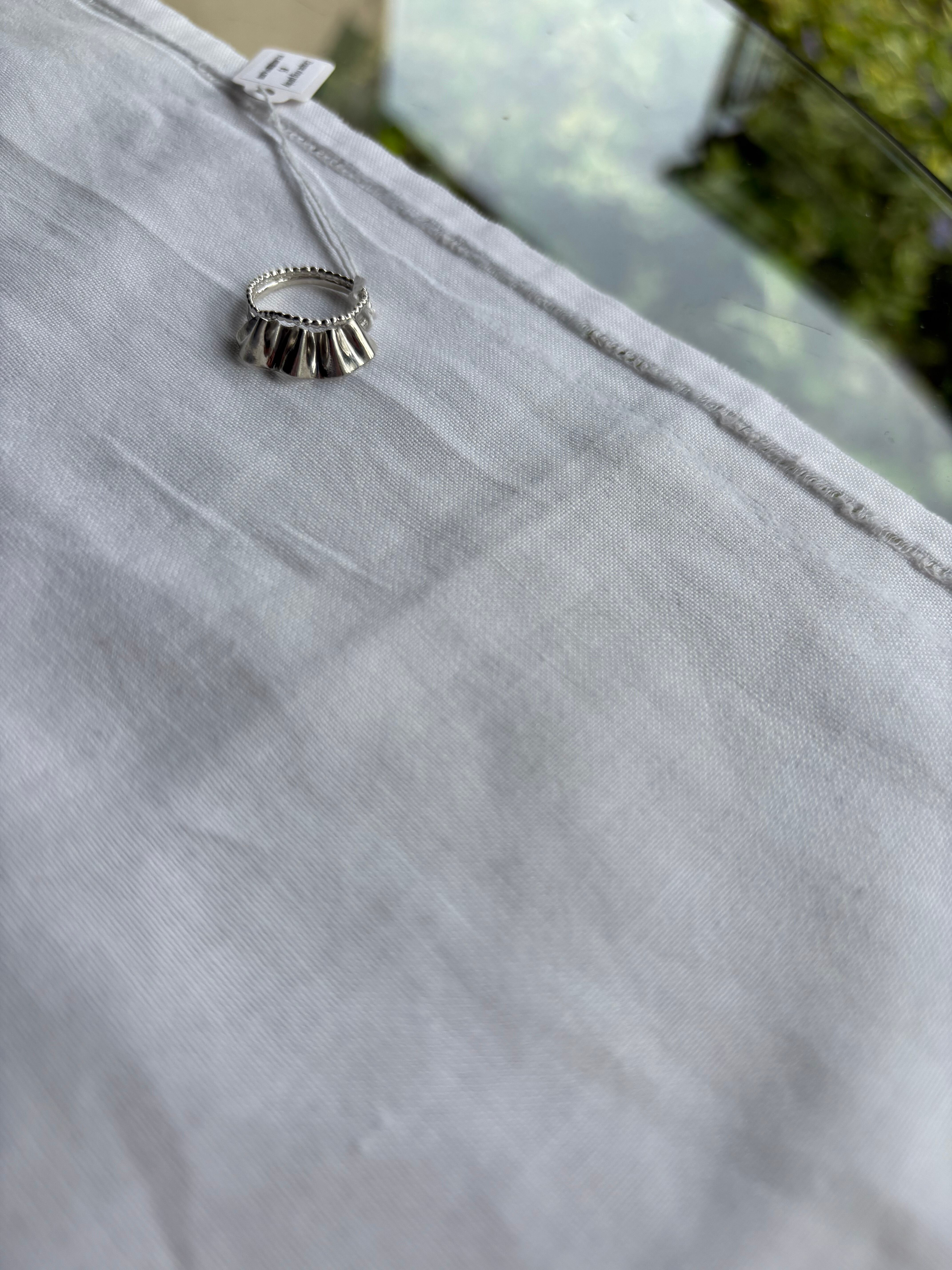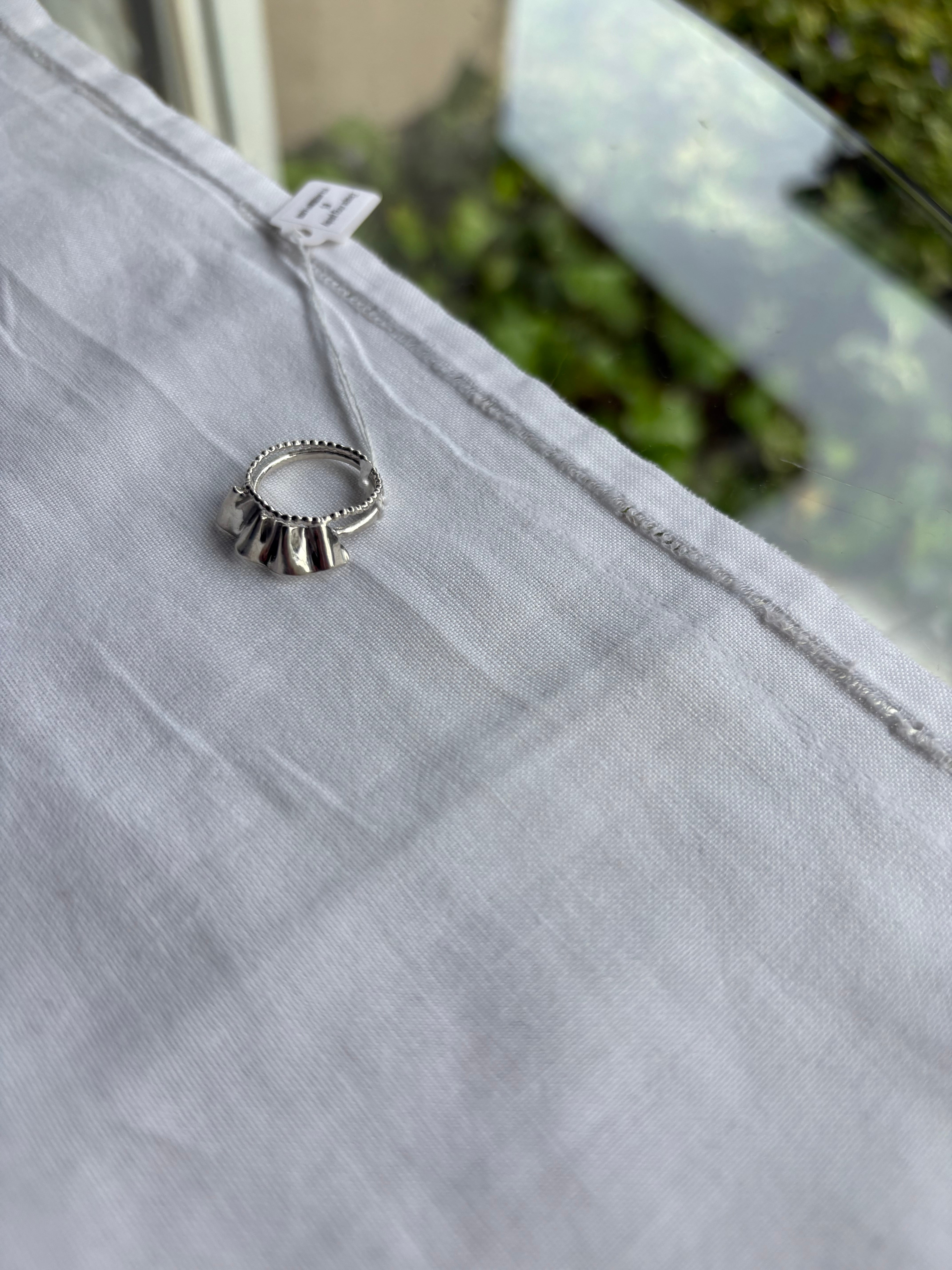 光を浴びてドレープが煌めく様がとても素敵なリングです。