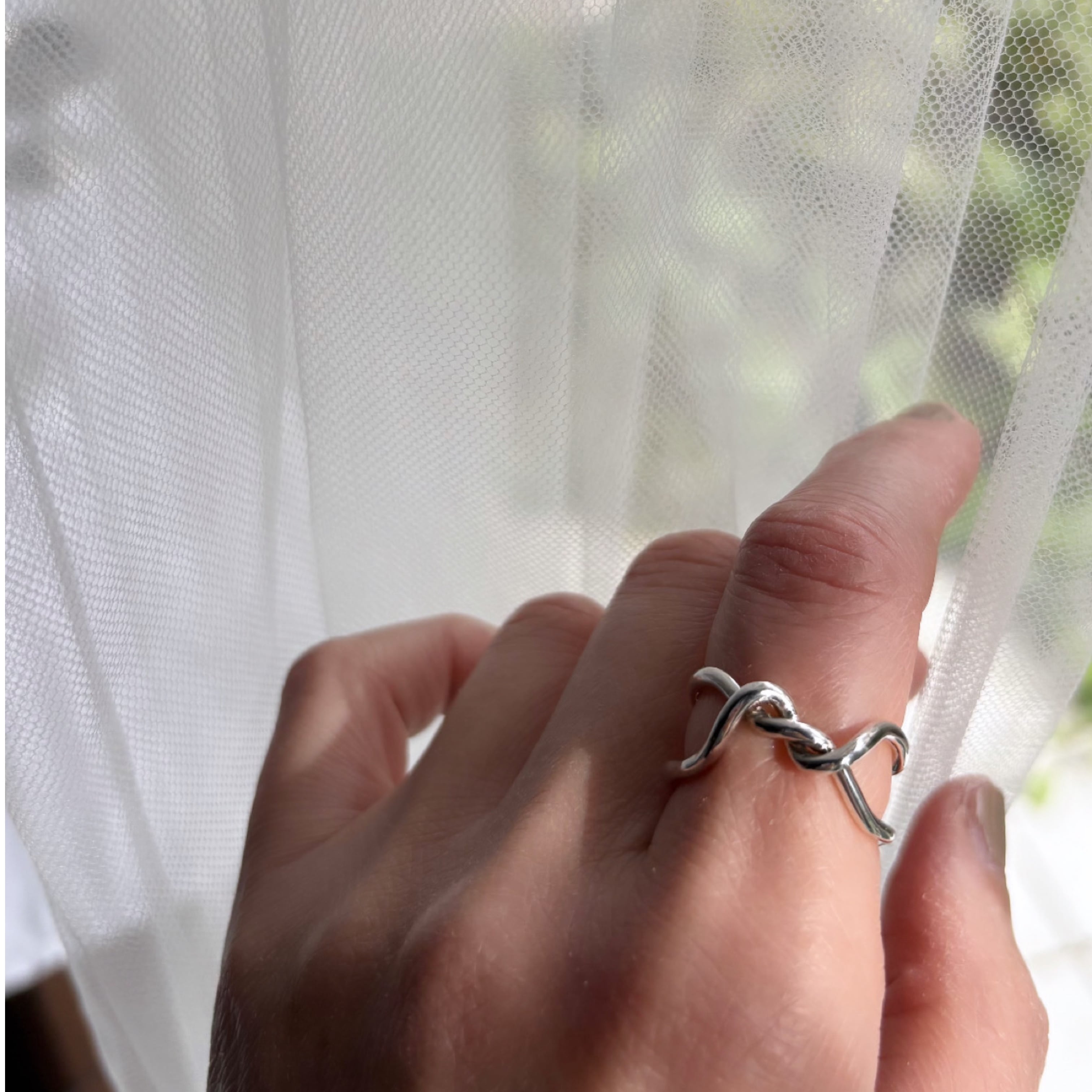 太さとうねうねとねじったデザインが絶妙なリング。