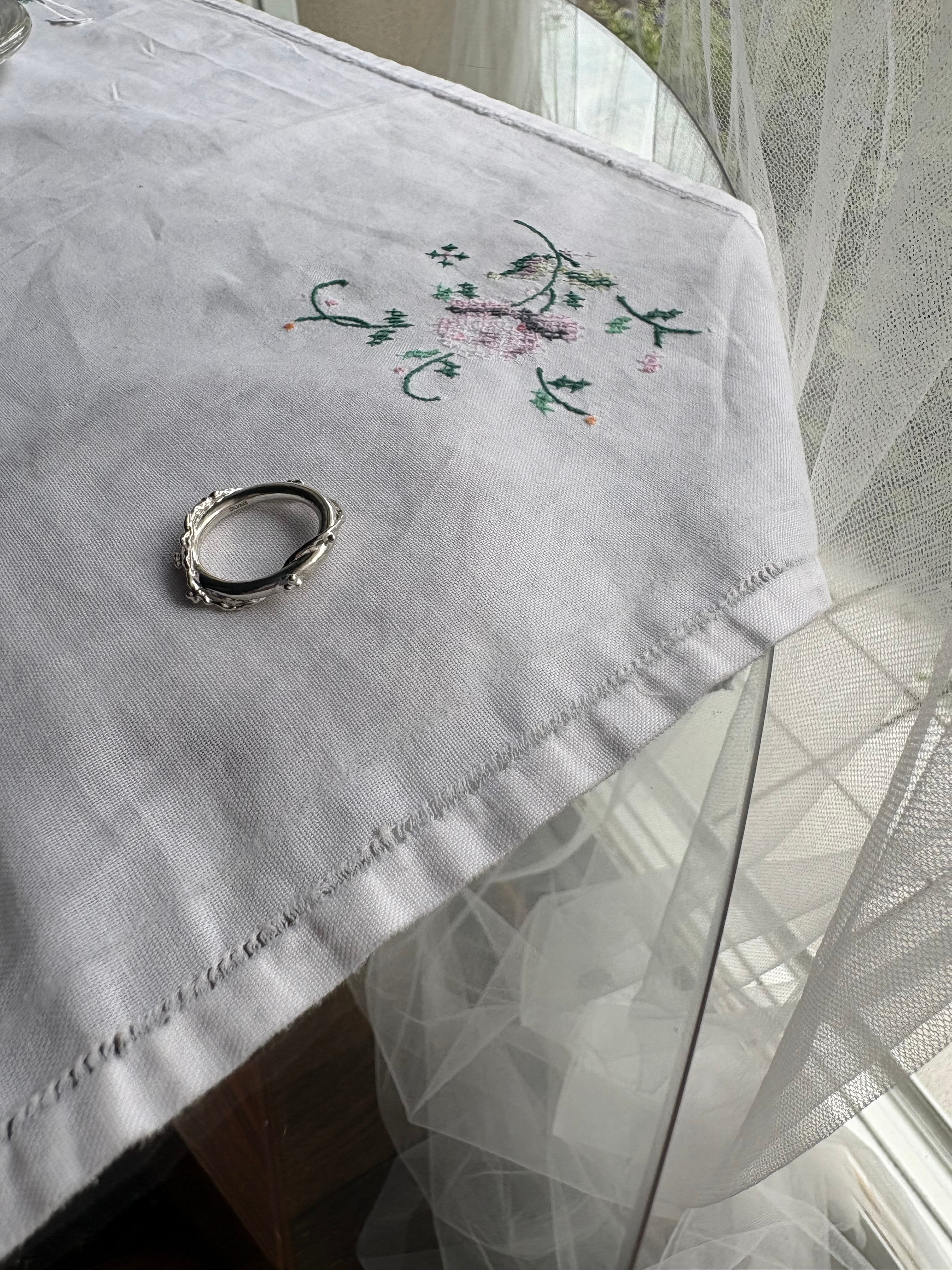 輪をつたうお花のような蔦のような、本当に細かなデザインがとても素敵。