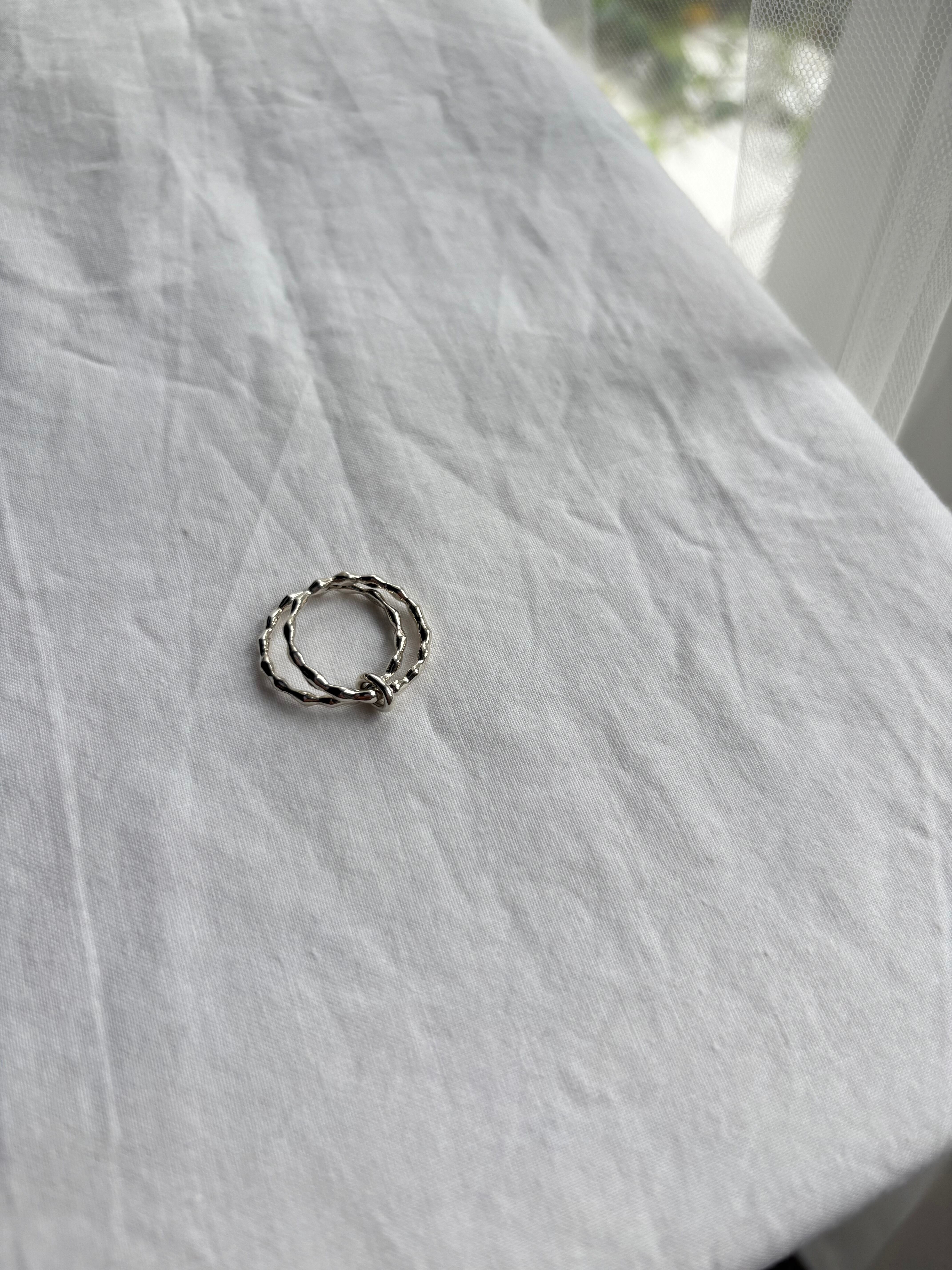 細かにデザインされ二連に連なったリング。