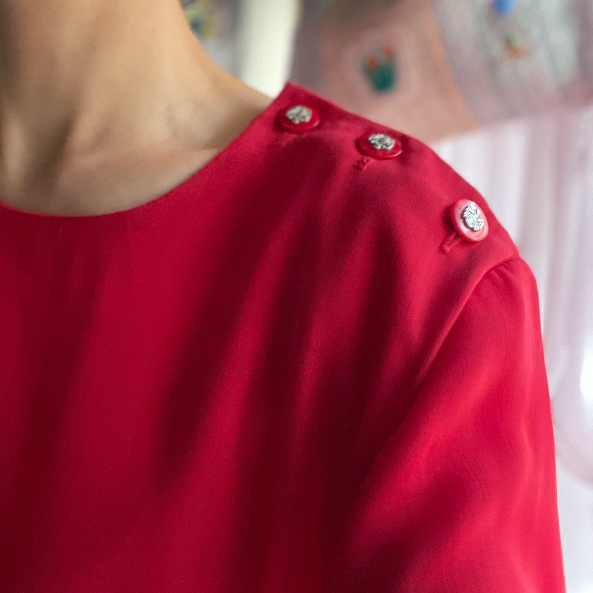 鮮やかな赤と細かなプリーツの軽やかさ。