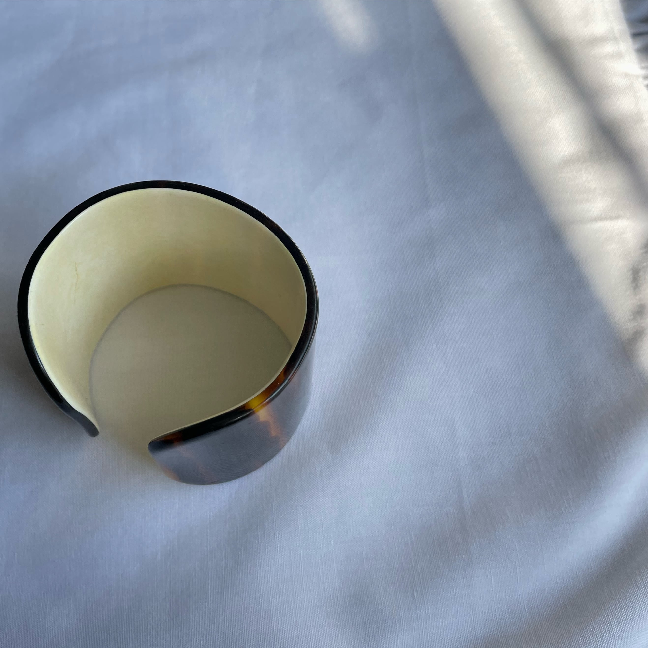 鼈甲のような模様に腕を装飾されたようなバングル。