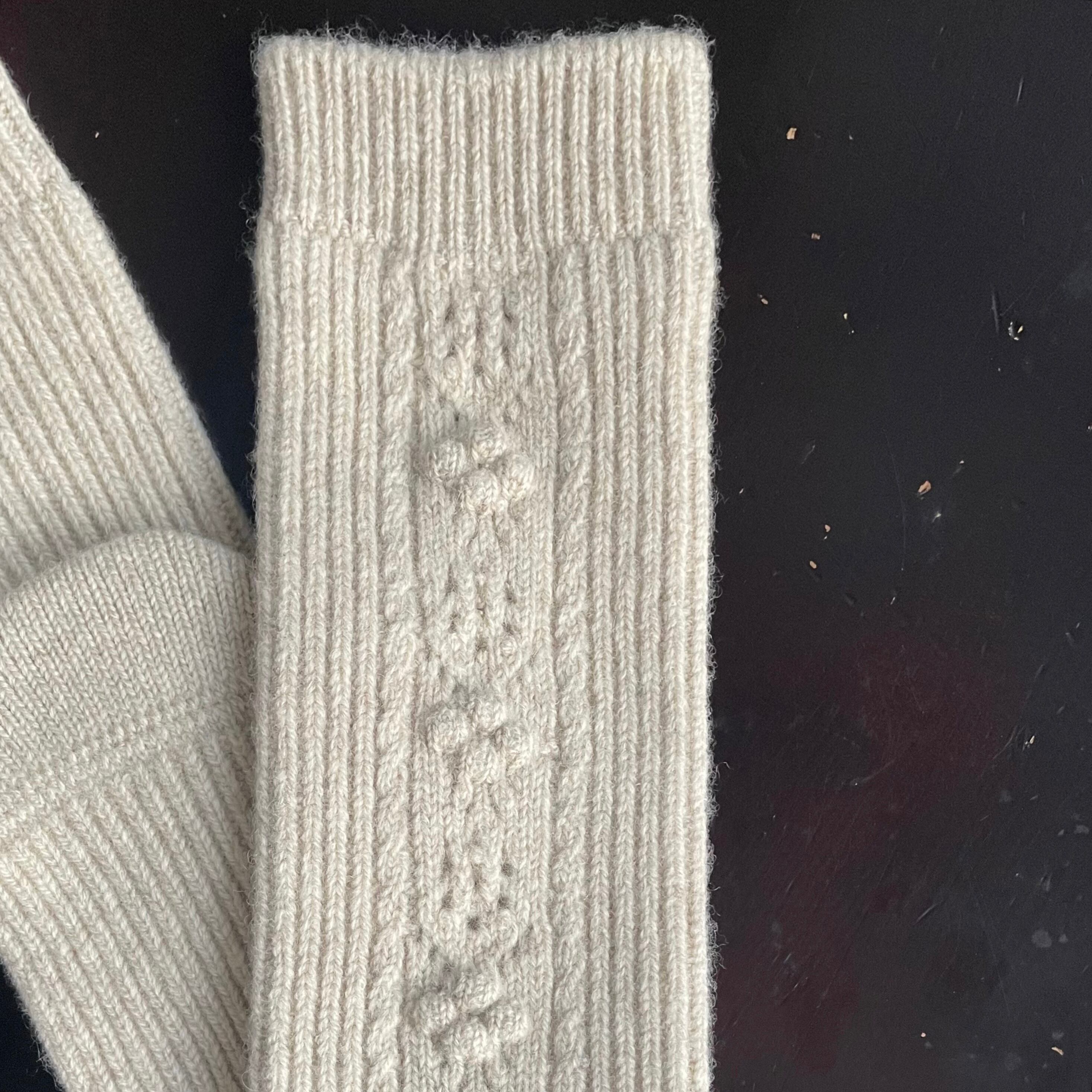 柔らかいセーターのような風合いの靴下に編み上げられています。