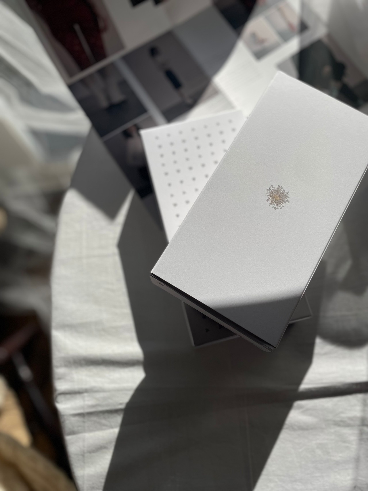 また、検品のため一度付属のボックスを開封しております。気をつけておりますがどうしても開封時に蓋部分内側に折れ目が入ってしまう場合がございます。ご了承くださいませ。