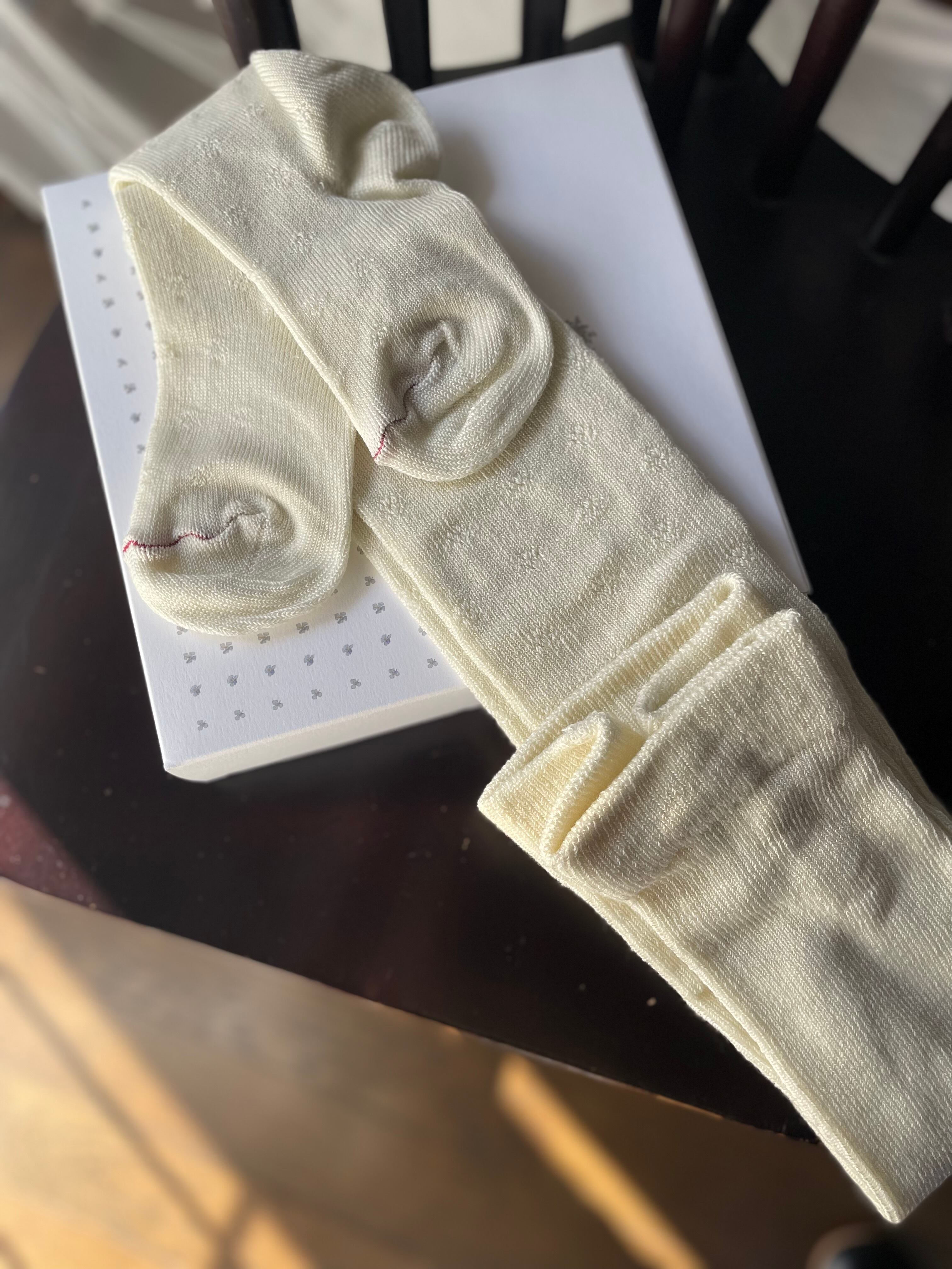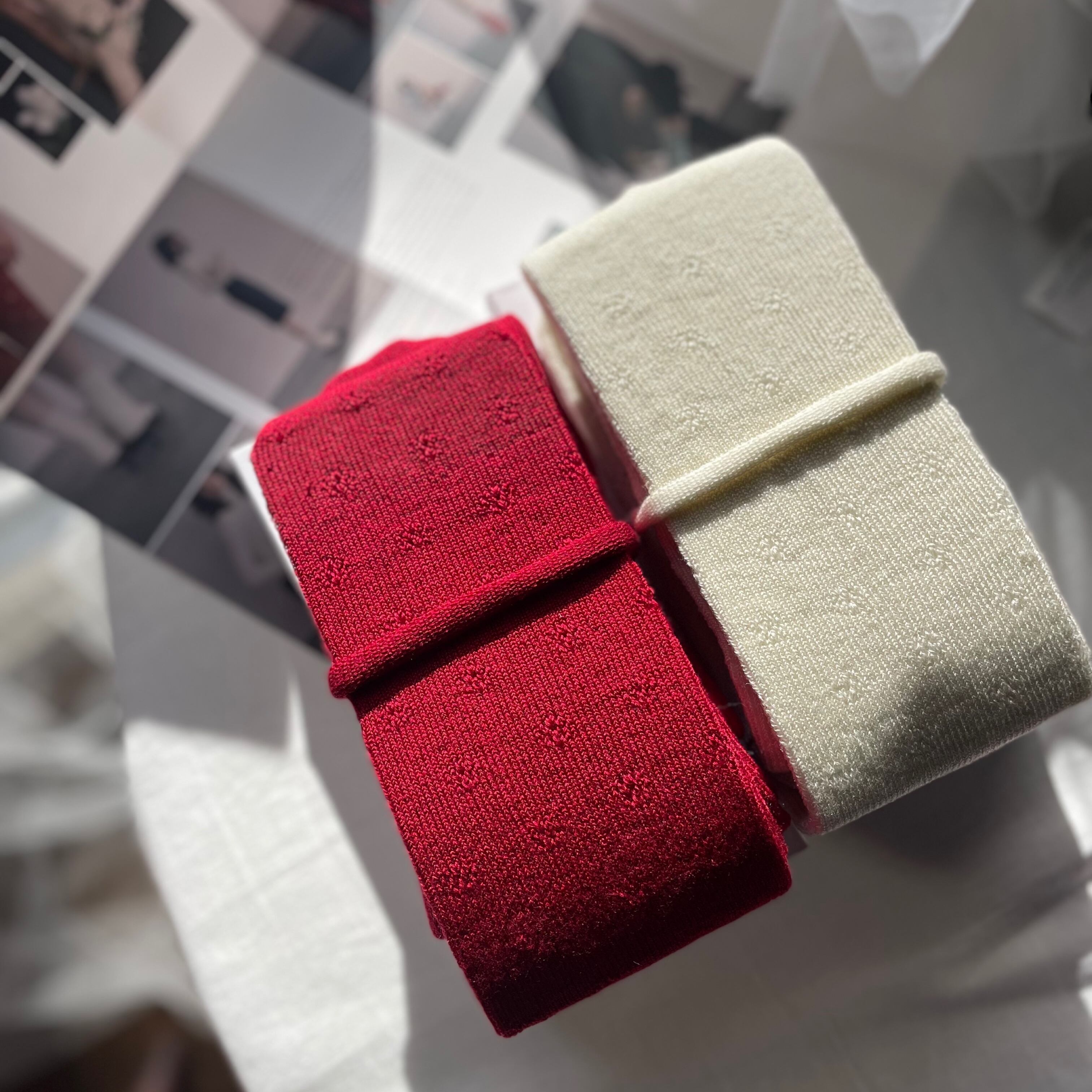 タイツは肌に当たる面積が大きいので、一日履いていて心地よい素材が大切...と拘られたタイツです。