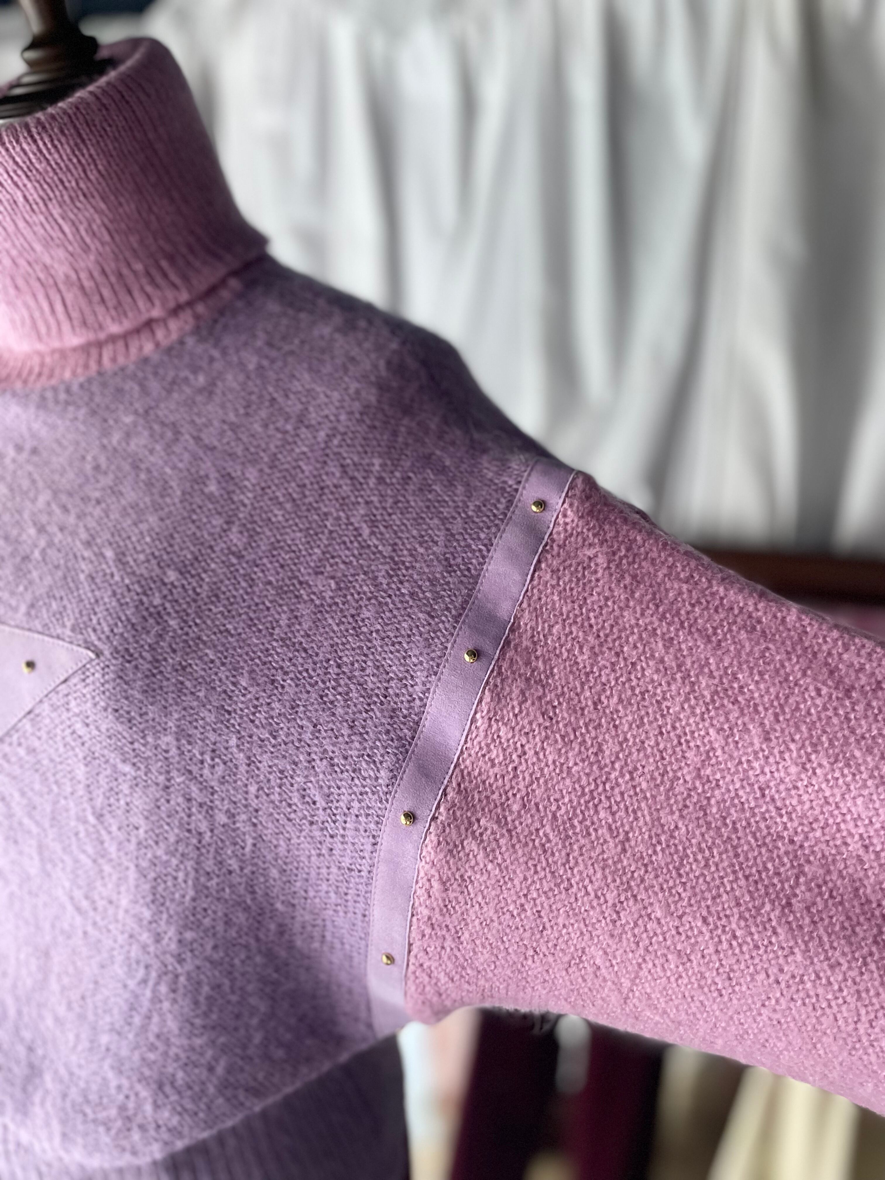 ・リブ部分の右サイドに異なる色の糸でリペアの跡があります。